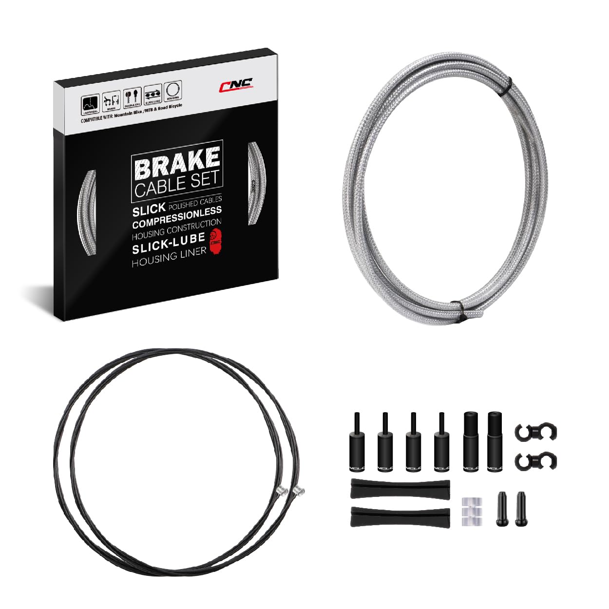 2 x Schutzabdeckungen mit Schnalle. 【Rennrad-Bremskabelgehäuseprozess】Bremskabelgehäuse besteht aus Skelettschicht - geflochtenes Netz + Zwischenschmierspulenstahl + gefütterter glatter Schmierstruktur-Innenschlauch, das Leitungsrohr hat eine hohe Festigkeit und wird nicht komprimiert, gute Flexibilität, SCX-S schmiert das Innenfutter reduziert Reibung und Bremsen empfindlicher. 4 x gefütterte Endkappen aus Legierung., 3 x Kabel-Donuts., 2 x drehbare Haken. Anleitung: Pro Fahrrad Bremszug Set für Rennrad Das Road Pro Bremsset ist ein Upgrade des gewöhnlichen Bremsleitungsprozesses, verbesserte Leistung, SCX-S glatte Struktur, verstärktes druckloses Bremsgehäuse, um dem Gehäuse die Stärke und Flexibilität zu geben, die für Bremsanwendungen notwendig ist. Pro Rennrad Bremszugsatz, geflochtenes Bremskabelgehäuse + Teflonbeschichtete Edelstahl-Innenleitung, hohe Bremsenhelligkeit, starke Sicherheit, glatte und seidige Bremsen. Lieferumfang: 1 x 3000 mm SCX-S Bremsgehäuse, geflochtener Draht. Teflon-Bremskabel-Innenleitung: Teflonbeschichteter Edelstahl-Schleifdraht, professionelles Polieren und Schleifen, Teflonbeschichtet, geringe Reibung, hohe Temperaturbeständigkeit, sehr glatt, kompatibel mit allen Leistungsschalen und Schmiermitteln, glatteres Bremsen. Stronglight Ceramic Teflon Alu Rennrad Kettenblatt für Campagnolo Ult... Bremszug Fahrrad SHIMANO Bremszugset Rennrad SIL-TEC Beschichtet – Glatte Bremsleistun Bowdenzug Fahrrad Farbe: Schwarz/Gold/Silber/Titansilber. 2 x versiegelte Endkappen aus Legierung. Retro Alu Rennrad Vorbau Silber 25,4 mm 1 x 2100 mm TFL-Brems-Innenkabel, vorne. 3ttt Tiramisu Lenkeraufsatz für Rennrad, silber, NEU, OVP, 19,49