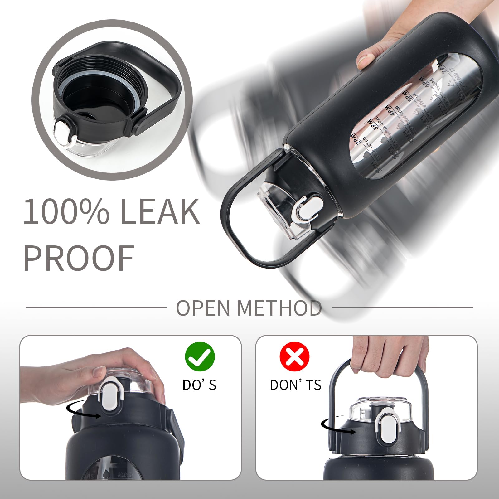 Die tragbare Wasserflasche mit Zeitmarkierung ist in einer Vielzahl von lebendigen Farben erhältlich, die nicht nur ein perfektes Geschenk für Ihre Familie und Freunde sind, um ihnen zu helfen, hydratisiert und gesünder zu bleiben, sondern auch ein perfektes Geschenk während Zeremonien wie Weihnachten oder während Mutter- und Vatertags. SIEROZUR verspricht, dass, wenn Sie mit unseren Produkten nicht zufrieden sind, wir Ihnen einen kostenlosen Rückgabe- oder Umtauschservice bieten können Glaswasserflasche mit Griffdeckel: Diese Wasserflasche verfügt über einen Pop-Up-Deckel mit Silikon-O-Ring, sicherem Verschluss und Staubschutz. Die große Glasflasche hat zwei Möglichkeiten, Wasser zu trinken. Glas-Wasserflasche, 1,8 l: Der Wasserkrug mit Strohhalm ist mit einer hochwertigen Silikonhülle ausgestattet, um die Wasserflasche vor leichten Stößen zu schützen. Glaswasserflaschen mit Zeitmarkierung: Die motivierenden Glaswasserflaschen mit Strohhalm halten 1,2 - 1,8 l Wasser, was 8 Tassen Wasser entspricht, die von Wissenschaftlern für menschliches Getränk pro Tag vorschlagen, sodass Sie sie nicht mehr häufig nachfüllen können. Glasflasche Mit Strohhalm SIEROZUR 1.8 L Glas-Wasserflasche Mit Strohhalm Und Griffdeckel, Halbe Trinkflasche Mit Strohhalm Glas Glas-Wasserflasche mit Schraubdeckel: Alles braucht besser in Glas, Zukro große 1,8 l Wasserflasche mit Strohhalm ist aus Borosilikatglas, entworfen mit einem verbesserten sicheren Schraubdeckel, der 100% dicht und staubdicht ist Es gibt sowohl einen Silikon-Trinkhalm als auch ein Loch, das direkt getrunken werden kann, was sehr bequem und schnell ist poweco Trinkflasche Glas 1,8L mit Strohhalm und Griff, 1800ml