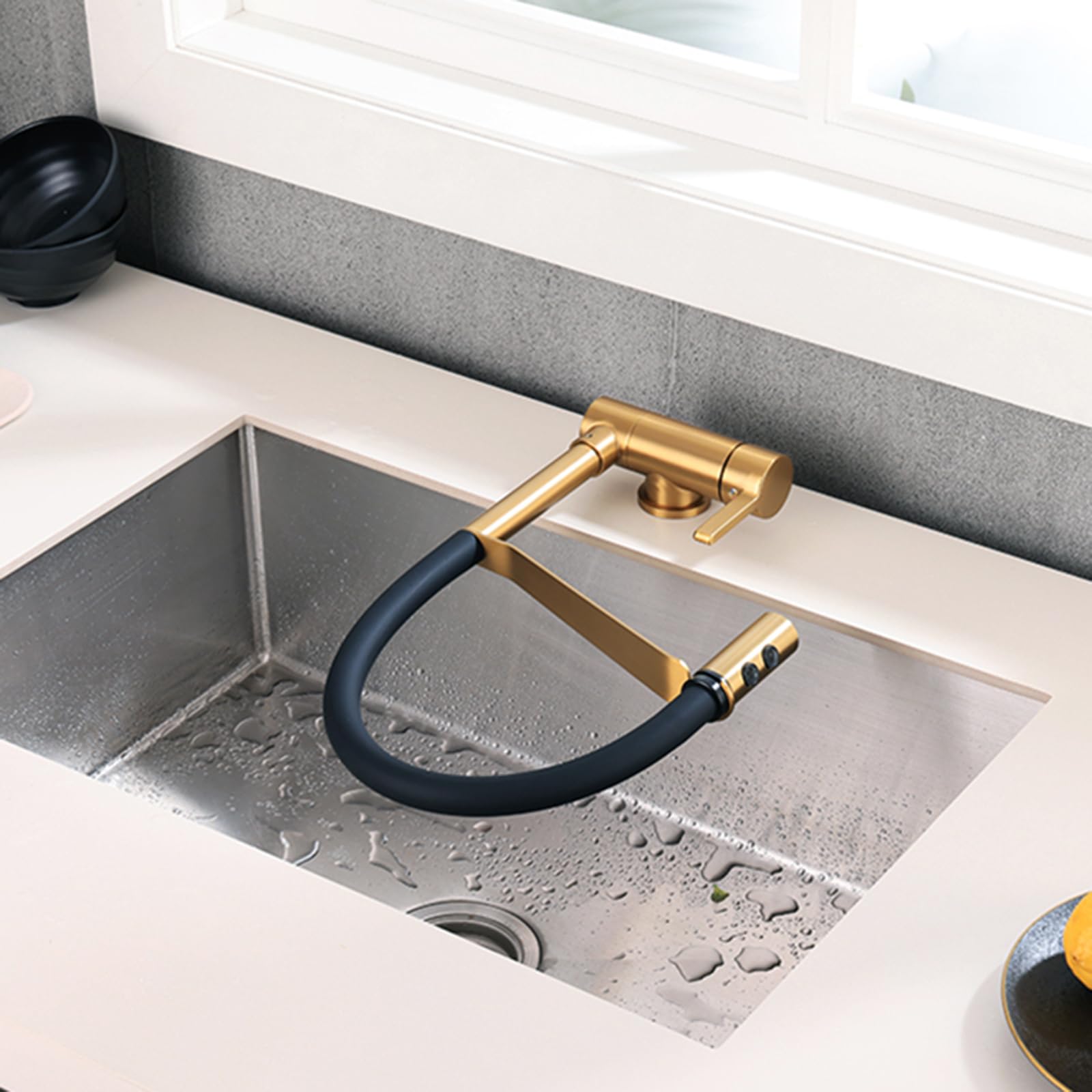 SJQKA Vorfenster Küchenarmatur, Gebürstetes Gold Wasserhahn Küche Klap