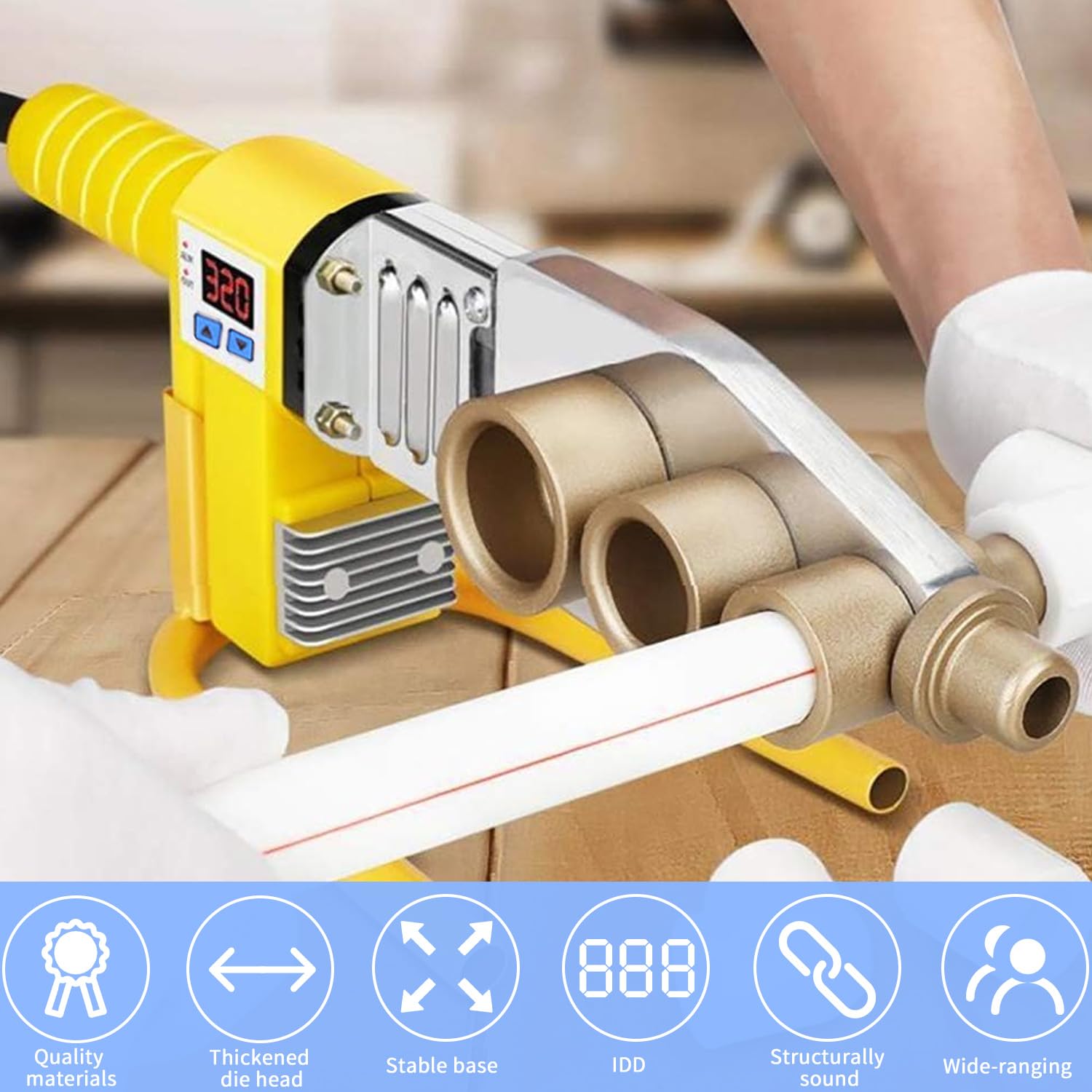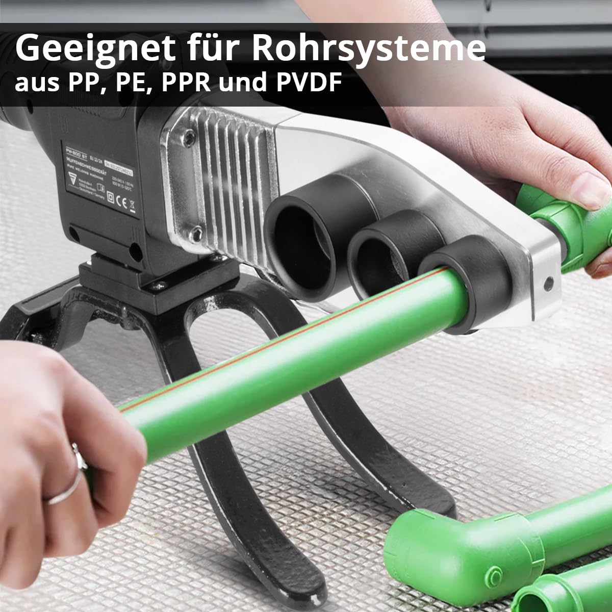 1 x Sechskantschlüssel & Montagematerial Dank einer Leistung von 800 W und einem Temperaturbereich von 0 - 300 °C eignet sich das Stumpfschweißgerät ideal für Fachleute und Heimwerker in der Installations- und Rohrleitungstechnik. Mit dem praktischen Rohrschweißer ist das Schweißen von PE, und PPR-Rohren sauber und schnell möglich. Kunststoffschweißgerät 800 Watt STAHLWERK Muffenschweissgerät Professionelles Und Leistungsstarkes Kun Ppr Rohr Schweißgerät 1 x Bedienungsanleitung in Deutsch Dank des stabilen Dreibein-Stativs ist freihändiges Arbeiten einfach möglich. Muffenschweißgerät Stumpfschweißgerät. 7-Jahre-Garantie gemäß § 6 Garantiebedingungen, weitere Informationen: auf Verkäufernamen und dort auf Allgemeine Geschäftsbedingungen und Hilfe klicken. Entwickelt für den anspruchsvollen Einsatz, bietet das Rohrschweissgerät maximale Effizienz und Sicherheit bei der Arbeit im Bau- und Sanitärbereich Hochwertige Verarbeitung Der Einsatz hochwertiger Komponenten sorgt für eine hohe Belastbarkeit. Ein stabiles Dreibein-Stativs ermöglicht freihändiges Arbeiten. Das STAHLWERK Muffenschweißgerät ist das perfekte Werkzeug, um Kunststoffrohre dauerhaft zu verschweißen. Insbesondere geeignet für die professionelle Anwendung in Industrie, Handwerk und DIY. Mit diesem leistungsfähigen Kunststoffschweißgerät sorgen Sie schnell für stabile und dichte Rohrverbindungen. STAHLWERK Muffenschweißgerät professionelles und leistungsstarkes Kunststoffschweißgerät für stabile und langlebige Rohrverbindungen Das STAHLWERK Muffenschweißgerät ist das perfekte Werkzeug, um Kunststoffrohre dauerhaft zu verschweißen. Lieferumfang 1 x Kunststoffschweißgerät PW-800 ST Mit dem leistungsstarken Kunststoffschweißgerät sorgen Sie schnell für stabile und dichte Rohrverbindungen. Edelstahl Rohrbogen - langlebige und präzise Rohrverbindungen Muffenschweißgerät Kunststoffrohrschweißer Li Batterie Wasser Rohr Schweißer mit 5 Matrizen Köpfen für Rohre Im Lieferumfang enthalten sind neben der Rohrschweißmaschine sechs Rohraufsätze in den Größen 20, 25, 32, 40, 50 und 63 mm. 2800W •50 - 320°C • 230V.