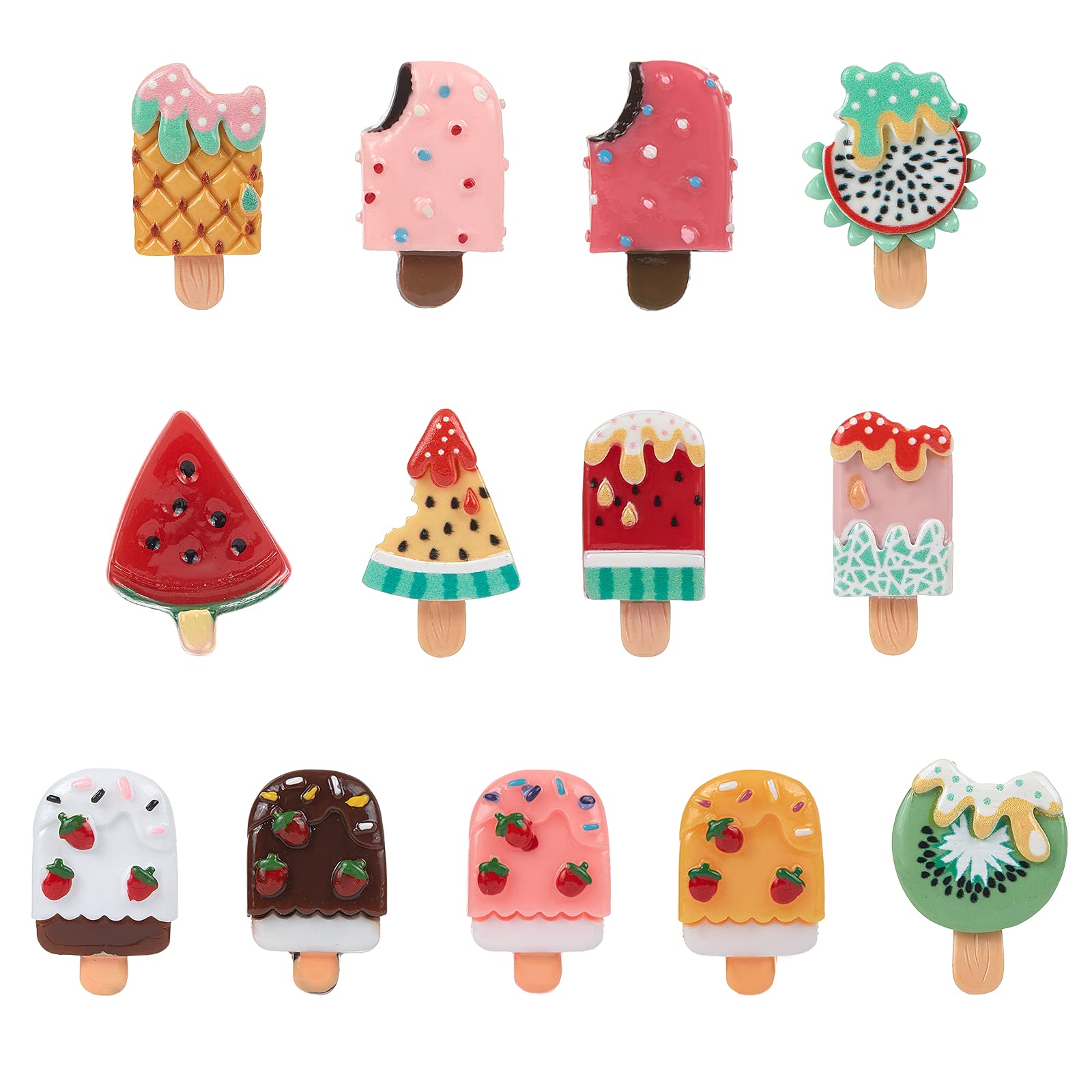 SUNNYCLUE 1 Box 50pcs Eiscreme Harz Charms Cabochons Lutscher Harz Schleim Charms Gemischte Farbe Flatback Plastik Knöpfe Cabochons Zubehör Ornamente Für DIY Scrapbooking Handwerk Dekoration