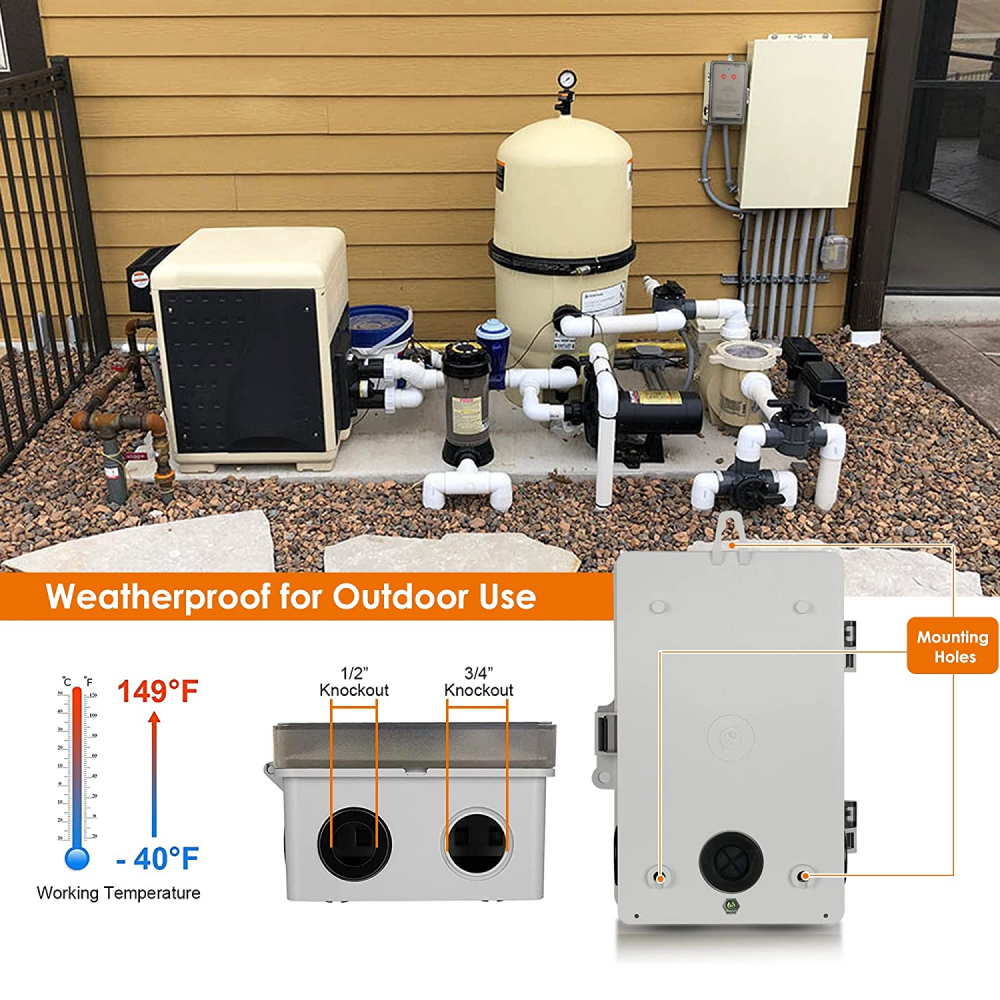 RODRET kabelloser Dimmer/Schalter, smart weiß - Deutschland Die Pool-Timer-Steckdosenbox kann von Ihrem Smartphone von überall über die kostenlose Smart Life App oder andere Tuya-Apps ferngesteuert werden, sodass Sie alle Ihre Outdoor-Geräte mit der App auf Ihrem Smartphone steuern können, indem Sie nur das Internet Ihres Hauses verwenden. Der Schwimmbad-Timer ist aus strapazierfähigem, isolierendem und schwer entflammbarem Material, das Abrieb, Feuchtigkeit und direkter Sonneneinstrahlung widersteht. Wetterfest für den Außenbereich: Regendichte und rostfreie Konstruktion. 【120 V/277 V Einzelschalter】 Separate Steuerung von zwei 120 V oder zwei 277 V Geräten; robuster 40 A Widerstand, 1 PS bis 2 PS; diese 2-Kanal-WLAN-Timer-Box kann leistungsstarke elektrische Geräte wie Pool-Filterpumpen, Brunnen, Warmwasserbereiter, Spas, Weihnachtsferienbeleuchtung, Terrassen-/Landschaftsbeleuchtung usw., steuern., ETL-gelistet und Anschluss. Sparen Sie Zeit, Geld und Ärger, indem Sie unseren automatischen, digitalen Pool-Timer von Suraielec erhalten. Nach dem Einstellen lässt es Ihren Pool regelmäßig laufen, ohne zu vergessen, ihn auszuschalten, damit Ihr Wasser sauber bleibt, ohne unverschämte Stromrechnungen zu schaffen und Sie müssen nicht einen Finger heben Suraielec Wireless Pool Timer SURAIELEC WLAN-Pool-Timer, 40 A, 2 PS, 120–277 VAC, Robuster Bewässerungscomputer Wlan 【 Steuerung durch Tuya Smart Life App 】 Der kabellose WLAN-Poolpumpen-Timer kann von Ihrem Smartphone von überall über die kostenlose Smart Life-App oder andere Tuya-Apps ferngesteuert werden; kompatibel mit Amazon Echo/Alexa und Google Home Assistant; kein Hub erforderlich; unterstützt nur ein dediziertes 2,4-GHz-WLAN-Netzwerk Wasserbrunnen und Musikanlage Auspuff, Dachboden und Umwälzventilator., Elektronische Unterhaltungssteuerung. Es ist kompatibel mit Amazon Echo/Alexa und Google Home Assistant. Es schaltet auch Ihre Urlaubslichter ein oder planen Sie die Sprinkler, ohne dass Sie nach draußen treten müssen, vermeidet die Unannehmlichkeiten beim Ein- und Ausstecken Ihrer Außenleuchten, Urlaubsdekorationen und anderer Hochleistungsgeräte., Einfache Bedienung. Formulare nach UL STD., 60730-1 Suraielec 120 V/277 V 2-Kanal-Einzelschalter Pool-Timer, für den Innen- und Außenbereich, Smart-Schalter, WLAN-Pool-Timer-Box für leistungsstarke elektrische Geräte Sparen Sie Zeit, Geld und Ärger, indem Sie unseren automatischen WLAN-Pool-Timer von Suraielec erhalten. Nach dem Einstellen auf Ihrem Smartphone hält er Ihren Pool regelmäßig am Laufen, ohne zu vergessen, ihn auszuschalten, damit Ihr Wasser sauber bleibt, ohne unverschämte Stromrechnungen zu verursachen und Sie müssen keinen Finger rühren. Sie laufen nicht Gefahr, dass Sie vergessen, Ihr Filtersystem zu betreiben oder es auszulassen, wenn Sie die Stadt verlassen. Es spart Ihnen auch Chemikalien- und Wartungskosten, wenn Sie es nicht so oft betreiben, wie Sie sollten. Einfach zu installieren und zu programmieren: Dieser elektronische 2-Kanal-Pool-Timer für den Außenbereich ist sehr einfach zu installieren. Robuster 40 A Pool Timer Schalter: 120 bis 277 V AC, 40 A resistent, 1 PS bis 2 PS Kapazität ermöglicht die Steuerung von leistungsstarken elektrischen Geräten wie Poolpumpen, Brunnen, Warmwasserbereitern, Spas, Weihnachtsferienbeleuchtung, Terrassen /Landschaftsbeleuchtung usw