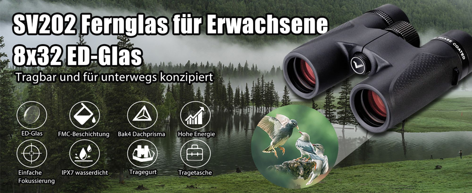 Svbony SV30, 10x42 Fernglas Mit Festem Fokus, FMC Optics Spectator