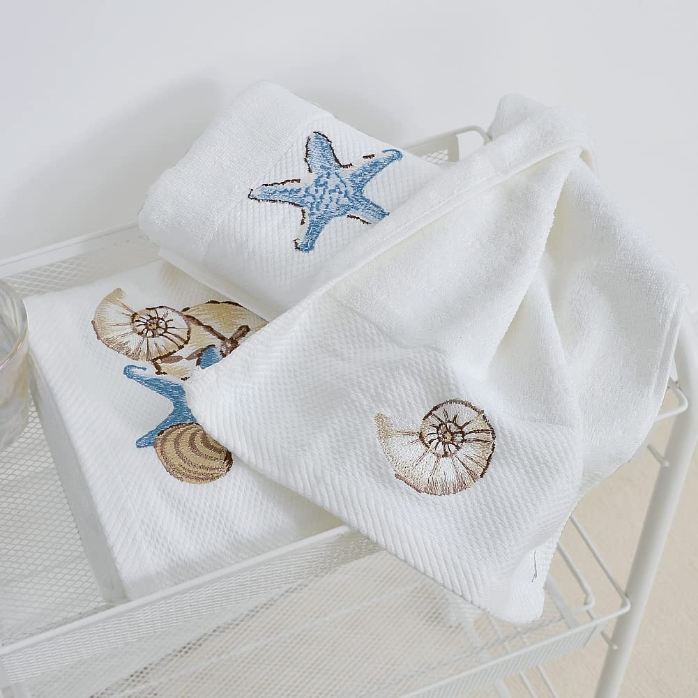 Naanle Schöne SandstrandSeesternMuscheln, Luxuriös, Weich, Sehr Saugfähig, Flauschig, MehrzweckHandtücher, Für Badezimmer, Hotel, Fitnessstudio Und Spa (35,6 X 71,1 Cm, WeißBeige