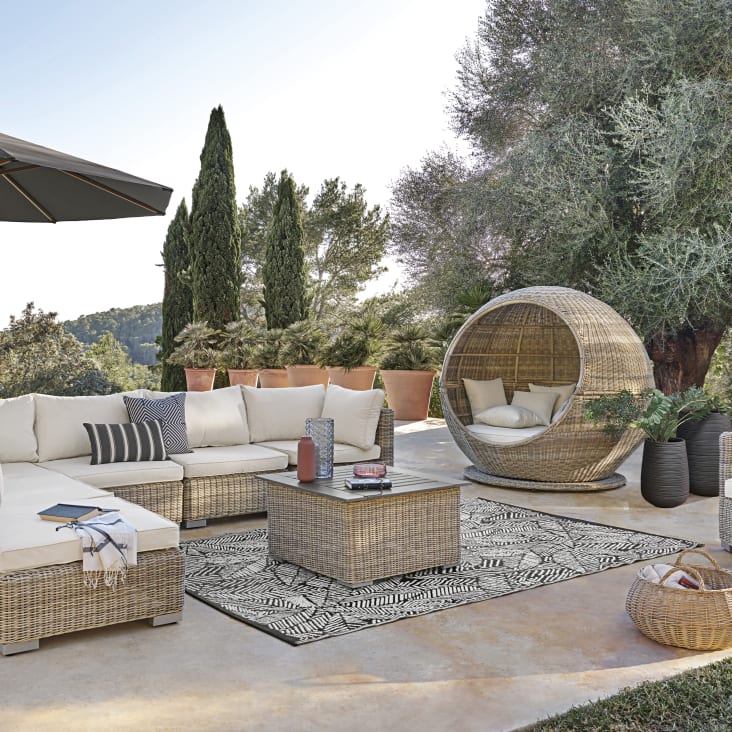 Merxx Gartenmöbel-Set Santorin 9-teilig Stapelsessel & Flex Ausziehtisch ➜ bei kaufen! Baumarkt & Online-Shop Lounge Möbel Outdoor Merxx Gartenmöbel Santorin Set 7tlg. 6 Klappsessel Verstellbar + 1x Balkon Möbel - Sessel, Tisch und Kissen: wasserfest und UV-beständig. Stellen Sie sicher, dass das Gewicht auf den Stühlen und dem Tisch gleichmäßig verteilt ist, um ein Kippen zu vermeiden. Lassen Sie Kinder nicht unbeaufsichtigt in der Nähe der Gartenmöbel spielen. Portland – Tisch Aluminium 165 x 90 Tischplatte Kunstharz Shade & mehr Der Tisch mit dem Grundmaß von 180 x 100 cm lässt sich bei Bedarf um einen zweiten Tisch auf eine Länge von 300 cm erweitern. Sie sind auf der Suche nach neuen Möbeln für den Außenbereich, um Ihre Terrasse einrichten zu können? Entdecken Sie die Gartenmöbel SANTORIN aus geflochtenem Harz, die unseren Außenbereichen Eleganz verleihen! Die Gartenmöbel für 2 Personen sind wasserfest und UV-beständig und behalten ihr ursprüngliches Aussehen. 10 Klappsessel, 2 Tische Sessel: 62 x 56 x 109 cm Tisch: gr: 180 x 100 x 80 kl: 180 x 83 x 74 cm Aluminium/Akazie Wo immer Sie sie aufstellen, können Sie Platz sparen, denn die Sitze lassen sich unter den rechteckigen Tisch schieben, so dass sie einen Block bilden. - Kissen: mit Reißverschluss abziehbar, in der Maschine waschbar. Die Bezüge sind abnehmbar, so dass Sie sie ganz einfach in der Waschmaschine waschen können. Produktbeschreibungen Beschreibung: Nehmen Sie diese Gartenmöbel aus der Reihe SANTORIN an, egal ob Sie eine große Terrasse oder einen kleinen Platz haben. Genießen Sie diese einbaufähige 2-Sitzer-Gartengarnitur auch in einem kleinen Raum, denn die beiden Gartensessel können platzsparend unter dem Tisch verstaut werden. Sie wird jahrelang wie neu aussehen, da sie den Witterungsbedingungen standhält. 5mm- Sitzkissen: L 50 × B 50 × Stp. Die beiden Sessel sind mit gepolsterten Kissen ausgestattet, die für zusätzlichen Komfort sorgen. Im komplett ausgezogenen Zustand ergibt sich eine Gesamtlänge von 300 cm. Alternativ können Sie die Tische auch separat voneinander aufstellen. Mit ihrem Design aus geflochtenem Harz verleiht sie jedem Garten oder jeder Terrasse und jedem Einrichtungsstil einen natürlichen Chic. Chaiselongue mit Kissen und Rädern Anthrazitfarbenes Harzgeflecht