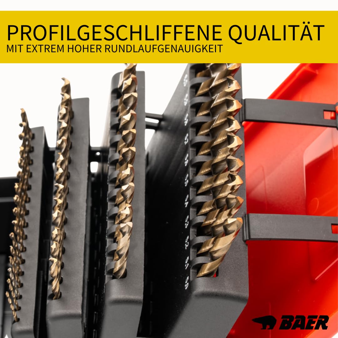 ANWENDUNGSGEBIETE - Eisen, Stähle, Gußwerkstoffe, Bronzen Vergütungs- und Einsatzstähle bis 1200 N/mm², hochfeste Legierungen auf CrNi-Basis und rost-, säure- und hitzebeständigen Stählen, wie V2A,V4A, INOX. Langlebige Qualität für maximale Performance Unser hochlegierter Werkzeugstahl ermöglicht bis zu viermal höhere Schnittgeschwindigkeiten als herkömmlicher Stahl. Einsatzzwecke Geeignet für Eisen, Stähle, Bronze bis 1300 N/mm², hochfeste Legierungen auf CrNi-Basis, rostbeständige Stähle, säurebeständige Stähle, hitzebeständige Stähle, Holz, Aluminium Sprühgerät - mobil - aus hochlegiertem Edelstahl V4A HINWEIS - Nicht in vorgebohrte Löcher bohren (Bohrer bricht ab, wegem dem Kreuzanschliff). Typ N (118° Sptzenwinkel bis Ø2,9mm & 135° ab Ø3mm) , Durchmesser 6 - 10 mm , Standard DIN 338 EXAKT, SCHNELL & LANGLEBIG: Geschliffene Schneiden ermöglichen kraftsparendes Bohren mit geringerer Hitzeentwicklung. BaerCoil BAER Spiralbohrerset, (0, 1mm steigend) 1-6 mm, HSSG, DIN 338, Preisvergleich - Dezember 2025 Schrauben Set HSSG Bohrer Satz (0,1mm Steigend) 1 - 6 Mm In Industriequalität Baer Tools Dank hoher Effizienz und niedriger Produktionskosten sind sie ideal für die Serienfertigung. Vorteile unserer Spiralbohrer: ✓ Temperaturbeständigkeit & Härte ✓ Präzise & selbstzentrierend ✓ Hohe Verschleißfestigkeit & Laufruhe ✓ Optimale Spanabfuhr Perfekt für exakte Bohrungen und langfristige Kostenersparnis! Auch Holz und Aluminium lassen sich problemlos bearbeiten. Er eignet sich ideal für Eisen, Stahl, Bronze bis 1300 N/mm² sowie hochfeste CrNi-Legierungen, rost-, säure- und hitzebeständige Stähle. Das HSSE-Bohrer-Set 6–10 mm (0,1mm steigend) bietet immer die passende Größe! Präzision in Perfektion – Das BAER HSSG Bohrer-Set Händlervideo Die Verwendung von Schneidöl oder Emulsion wird hierbei empfohlen. Perfekte Leistung für anspruchsvolle Anwendungen! Finden Sie jetzt passende Produkte mit Which.One. Spiralbohrersatz HSSE 65 teilig von 1,0 bis 6,0 mm +3,3 und 4,2 mm Extrembohrer DIN 338 – HSSE/Co-Stahl mit X-TRA Kreuzanschliff Unsere Spiralbohrer sind die perfekte Wahl für die industrielle Fertigung. Schluss mit Bohrer-Suche und Chaos in der Werkstatt.