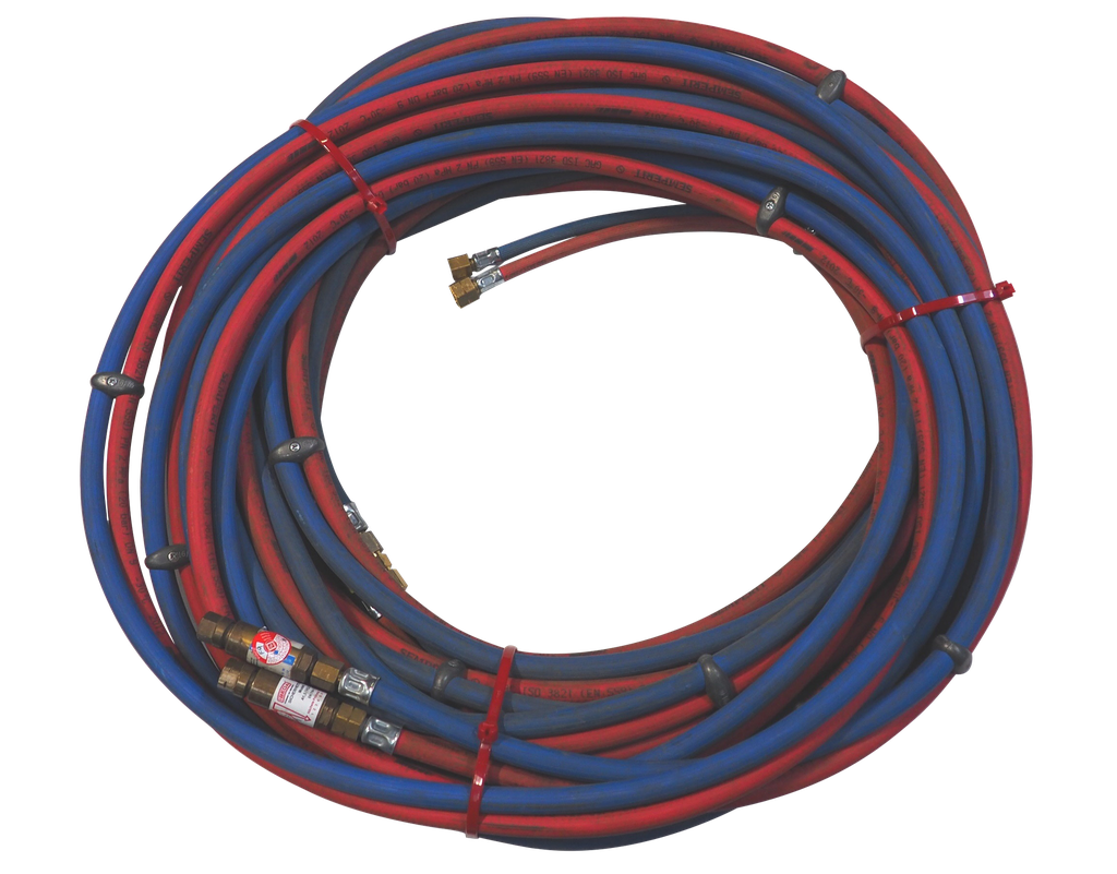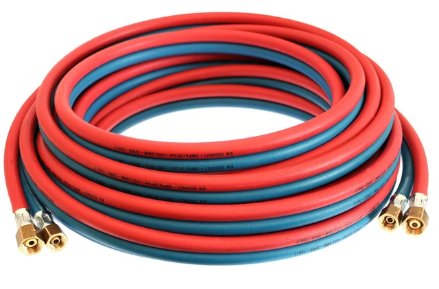 bestehend aus Markenschläuchen wie Semperit, Saldaform oder Codan Bei Autogenschläuchen mit Schellen wird der Sauerstoff- und Acetylenschlauch je laufendem Meter mit einer Verbindungsschelle verbunden. Bei uns erhalten Sie Autogen Schlauchpakete in Längen zwischen 5 und 40m. Um Verwechsungen zu vermeiden, besteht ein Autogen Schlauchpaket aus zwei farblich... Die Autogenzwillingsgarnitur Acetylen- (9 x 3,5 mm) und Sauerstoffschlauch (6 x 5 mm) von JAS Welding bietet vulkanisierte Schläuche und langlebige Anschlüsse. Unsere Produktpalette umfasst verschiedenen Ausführungen von Acetylen/Sauerstoff Autogenschläuchen, um den unterschiedlichen Bedürfnissen und Anwendungen gerecht zu werden Sauerstoff (blau) Innendurchmesser: 4 x 3,5 mm Beidseitig mit Standardanschlüssen 1/4 rechts und 3/8 links montiert - passt an jedes Griffstück Für die konfektionierten SCAPP Autogenschläuche werden ausschließlich Markenschläuche von Semperit, Saldaform, Codan, usw., verwendet., techn. ZWILLINGS-AUTOGENSCHLAUCH DIN EN ISO 3821_EN 559 - TBHI Hydraulik- und Acetylen (rot) Innendurchmesser: 4 x 3,5 mm Autogenschlauch Arten Autogenzwillingsgarnitur Acetylen/Sauerstoff - JAS Welding – Kaack Autogenschlauch Durchmesser Die Semperit Schlauchgarnitur ist in den Längen: 5m, 10m, 15m, 20m, 25m, 30m und 40m erhältlich.