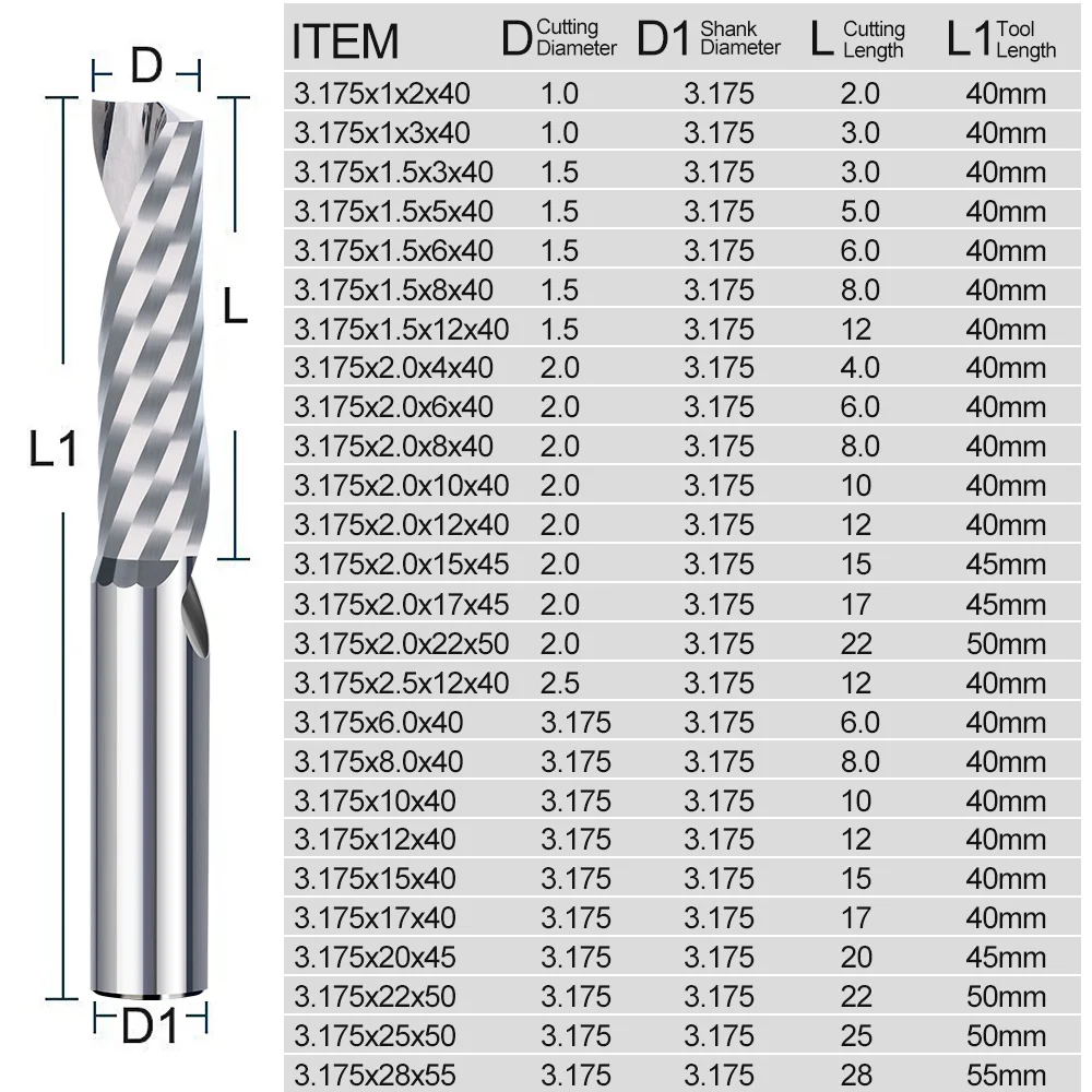 EINZELNE FLÖTE SPIRALE Schaftfräser CNC-Fräser-Bit Flöte Hartmetall Praktisch EUR 12,99 - DE
