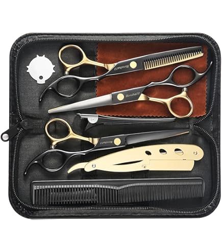 Die Klingen sind rasiermesserscharf für den perfekten Schnitt. Scharf, glatt und effizient: Mit einer fein geschliffenen Klinge und einer speziell entworfenen Culton Spannschraube übertrifft diese Schere jede andere Schere ihrer Klasse. Hier bei Jiesenyu sind wir auf die Bereitstellung der besten und professionellen Produkte spezialisiert. Marke: Jiesenyu., Name: Friseurschere., Größe: 6., 0 / 17., 5cm Material: 440C Härte: 62 HRC., Sparse-Rate: 20 % - 30 %. Machen Sie jedes Mal perfekte Schnitte: Dieses luxuriöse und elegante Haarscheren-Set ist aus handgeschärftem japanischem Edelstahl gefertigt, der seine scharfe Kante bis zu 5 x länger behält als herkömmlicher Edelstahl. Rechtlicher Haftungsausschluss: Hier bei Jiesenyu sind wir auf die Bereitstellung der besten professionellen Beauty-Tools spezialisiert. Wir haben mehr Zeit in unser Produkt investiert, damit Sie mehr Zeit damit verbringen können, produktiv zu sein. Egal, ob Sie auf der Suche nach dem bequemsten und effizientesten Haarstylisten sind oder einen stilvollen Look für Ihre Familie kreieren möchten, JIESENYU Profi-Scheren-Set kann ein perfektes Haarschneiden gewährleisten., Jetzt bestellen! Wichtigste Highlights · Farbe. Dünner Werdende Schere · Material. Edelstahl · Marke. JIESENYU · Klingenmaterial. Edelstahl · Stil. Japanisch · Klingenschneide. Gerade Einzelschere hat keine Beutel, aber sie haben auch einen guten Verpackungsschutz., Wie abgebildet. Sie sind aus hochwertigem japanischen Edelstahl gefertigt. Lebenslange Garantie: Wir sind so zuversichtlich, dass Sie diese Schere lieben werden Wir wissen, wie wichtig es ist, hochwertige Werkzeuge zu haben, die jahrelang halten können. Friseur Set JIESENYU Japanische 440C Friseurschere Schnitt 6 Zoll Haarschere Scheren-Sets Friseurscheren Aus Edelstahl Zum Ausdünnen Professionelle Friseur-Sets Schwarz/goldfarben (dünner Werdende Schere Friseurset Für Kinder