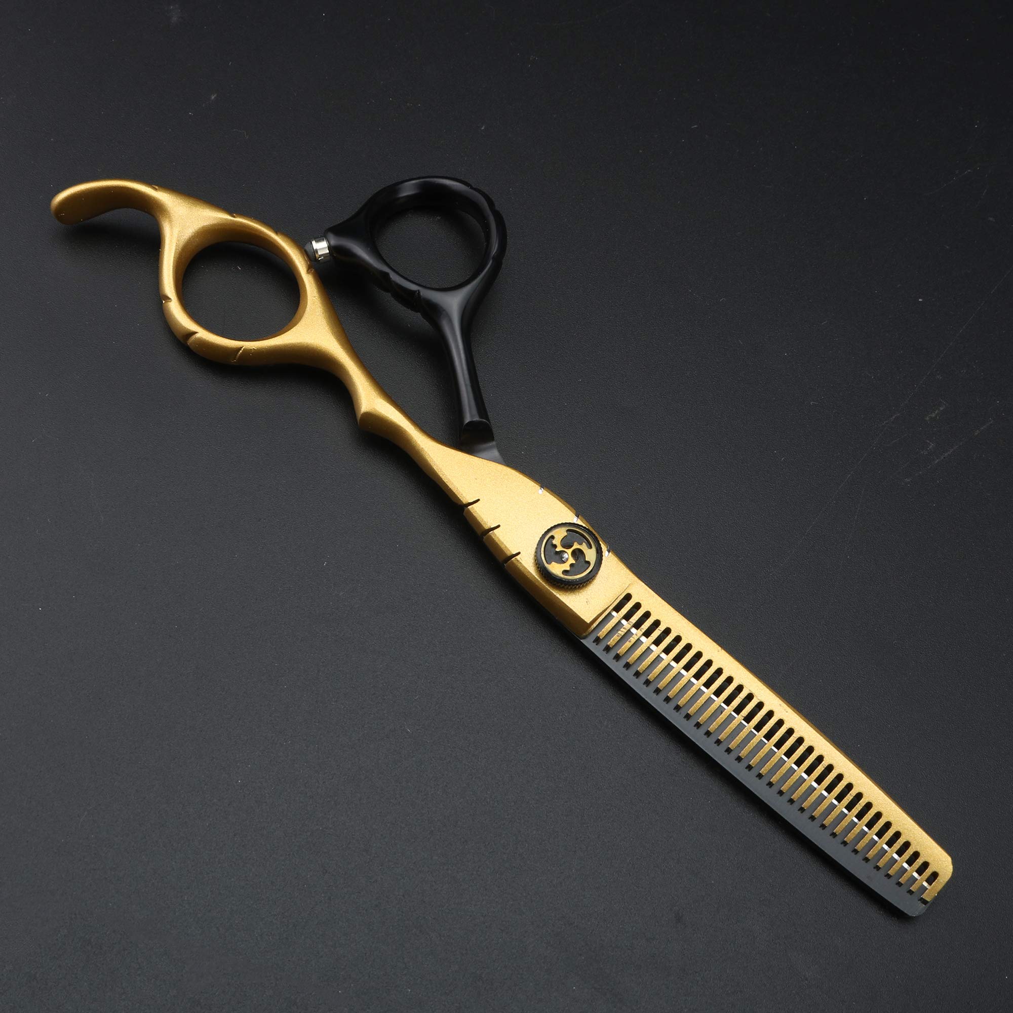 JIESENYU Japanische 440C Friseurschere Schnitt 6 Zoll Haarschere Scheren-Sets Friseurscheren Aus Edelstahl Zum Ausdünnen Professionelle Friseur-Sets Schwarz/goldfarben (dünner Werdende Schere