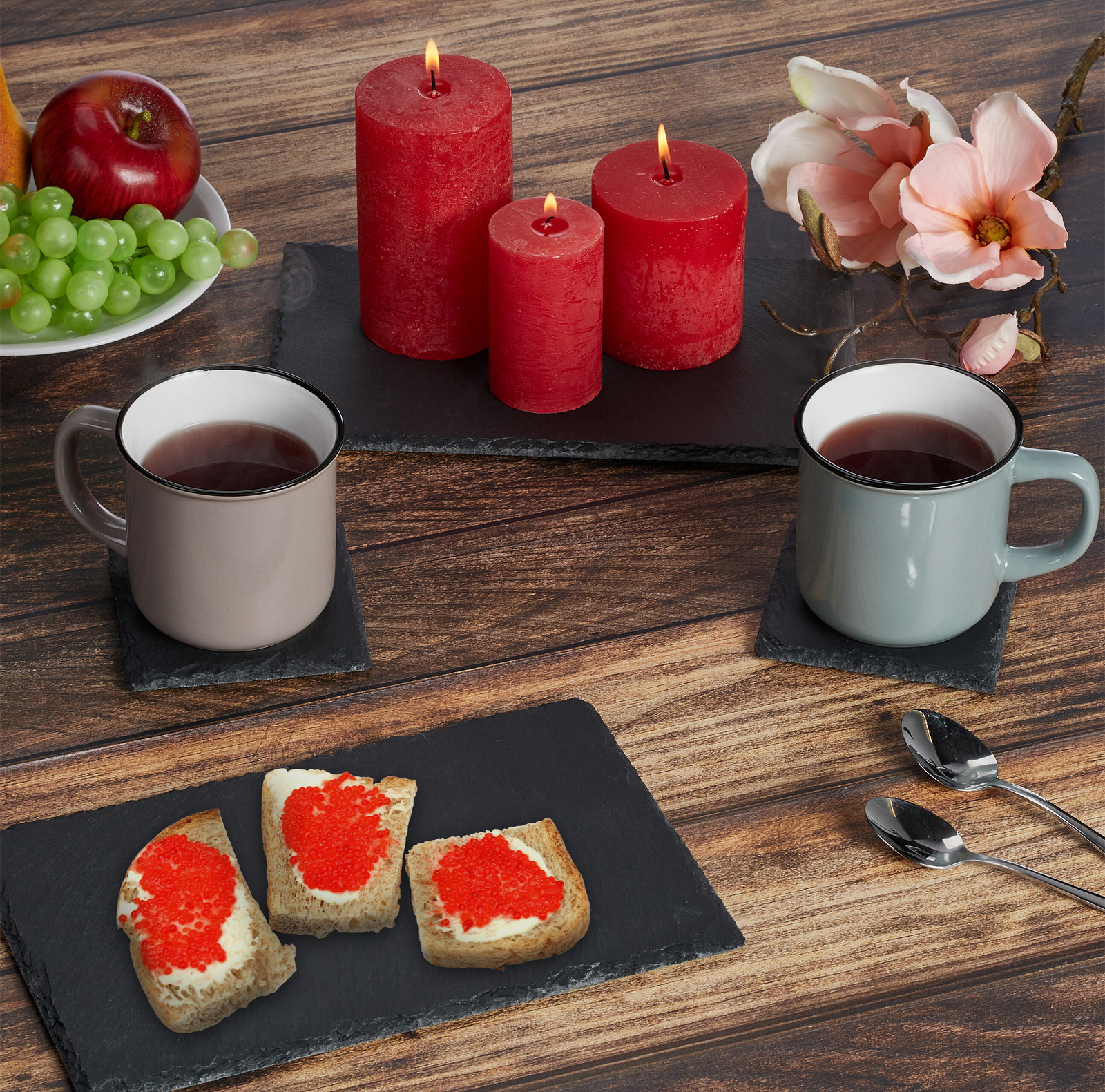 Im Set: Eckige Schieferuntersetzer im praktischen 8er Set - Größe je Untersetzer BxT: ca., 10 x 10 cm Dank Schaumstofffüßchen auf der Unterseite schonend zum Untergrund Auch unter Raclette-Pfännchen oder als Kerzen-Untersetzer machen die kleinen Schieferplatten optisch einiges her. Die Dicke der Untersetzer ist normgerecht und ideal für verschiedene Anwendungen. Ich freue mich darauf, die Schieferuntersetzer individuell zu bemalen und werde sie definitiv wieder bestellen, um diesen frischen Look zu erhalten Für Getränke: Quadratische Glasuntersetzer für Tee, Wein, Bier etc. Maße pro Untersetzer H x B x T: ca., 0,7 x 10 x 10 cm , Gewicht: je ca., 140 g , Material: Schiefer, Schaumstoff , Farbe: Anthrazit Die eckigen Glasunterleger aus Schiefer sorgen für dekoratives, uriges Flair auf dem gedeckten Tisch und schonen gleichz >> Jetzt Preise vergleichen Vielseitig: Nicht nur als Getränkeuntersetzer, auch für Raclette-Pfännchen oder Kerzen geeignet Untersetzer Schiefer 10x10 cm (ein Design Platten können auch mit Kreide beschriftet werden Schützen Deinen Tisch vor Flecken und Kratzern Dieses geschichtete Gestein lässt sich nicht 100% gerade zuschneiden. Naturschiefer sorgt für rustikales Flair auf dem gedeckten Tisch Schiefer Untersetzer im 8er Set Die eckigen Glasunterleger aus Schiefer sorgen für dekoratives, uriges Flair auf dem gedeckten Tisch und schonen gleichzeitig dessen Oberfläche. Wohnen, Garten, Freizeit Relaxdays ist ein E-Commerce-Unternehmen mit Schwerpunkt auf Haushaltsprodukten., Deutsche Marke , Europäische Standards , Kundenorientiert , Ausgezeichnet , Über 10 Jahre Erfahrung Auch für Kerzen oder als Raclette-Untersetzer geeignet Lieferumfang 8x Naturschiefer Untersetzer Abbruchkanten können variieren. Raclette Untersetzer Schiefer Untersetzer 8er Set Kaufen Untersetzer Gläser Praktisch: Schoner auf der Unterseite der Steinuntersetzer verhindern unschöne Kratzer im Untergrund Rustikale Flaschenuntersetzer aus Naturschiefer Untersetzer zum Abstellen von Gläsern und Tassen 10 x 10 cm Die quadratischen Glasuntersetzer eignen sich perfekt für Tee, Wein, Bier und andere Getränke und verhindern Flecken auf Möbeln Die Naturschiefer-Untersetzer verbreiten ein uriges, rustikales Flair auf dem gedeckten Tisch und sind nicht nur als Getränkeuntersetzer, sondern auch für Raclette-Pfännchen oder Kerzen geeignet Die Schoner auf der Unterseite der Steinuntersetzer verhindern unschöne Kratzer im Untergrund.
