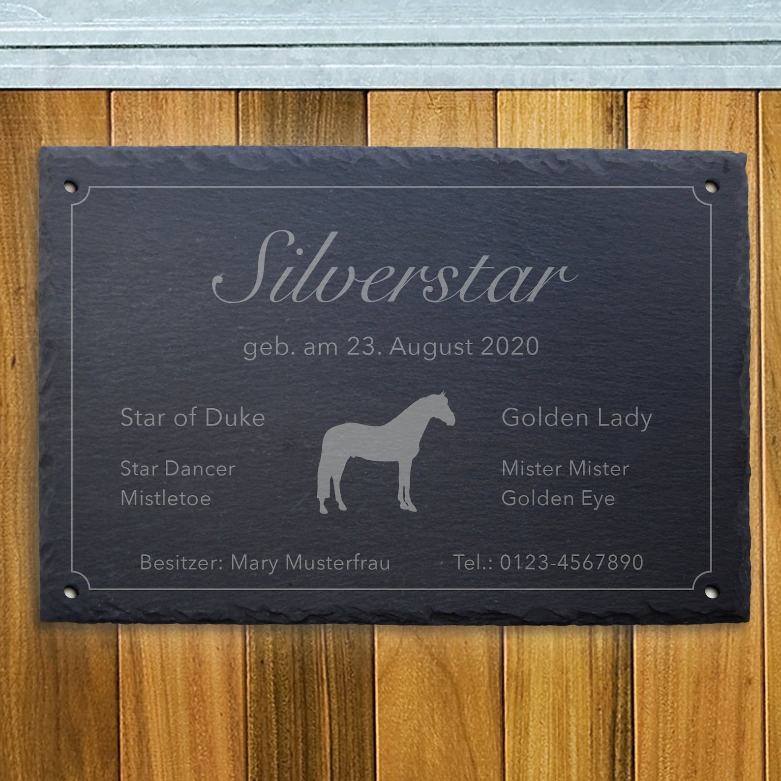Die Hühner Schiefertafel eignet sich als besonderes Geschenk für Anlässe wie Weihnachten, Geburtstag, Ostern, Nikolaus und zu anderen besonderen Feierlichkeiten. Das Hühnerstall Schild kann mittels Jutebandaufhängung an Wänden, Türen und Toren befestigt werden. Besonders beliebt sind unsere Grabstecker und Grabplatten aus Schiefer – dezent, edel und wetterbeständig, mit liebevoller Gravur versehen. Ob bei Regen, Sonne oder Frost – unsere Produkte behalten Form und Gravur über viele Jahre hinweg. Gravuren mit Bedeutung – persönlich und langlebig Die Größe der Tafel beträgt ca. Schiefertafel-Set anthrazit 4-teilig 2 x 16 x 0,5 cm Von liebevollen Botschaften über Namen und Daten bis hin zu Symbolen – wir gravieren mit höchster Präzision. Von klassisch bis kreativ Vielseitige Formate – für jeden Anlass das Passende Ob rechteckig, quadratisch, in Pfeilform oder als Beetstecker – unsere Schieferprodukte sind so vielfältig wie die Ideen unserer Kunden. Sie erwerben eine dekorative Tafel aus Schiefer mit lasergraviertem Text und Motiv. Die Größe beträgt ca. 22 x 16 x 0,5 cm. Schiefer ist ein Naturprodukt So erhalten Sie mit jedem unserer Produkte ein echtes Unikat, das durch seine zeitlose Schönheit überzeugt. Dauerhaft schön – auch im Außenbereich Nach dem Gravieren wird jede Platte mit einem hochwertigen Imprägniermittel versiegelt – für langanhaltenden Schutz und maximale Widerstandsfähigkeit gegen äußere Einflüsse. Durch natürliche Bruchkanten entsteht ein unverwechselbares Erscheinungsbild – kein Stück gleicht dem anderen. Ob zur Hochzeit, zum Geburtstag, als Gedenktafel oder einfach als Dekoration – bleibende Erinnerungen mit Herz und Hand. Eine schöne Dekoration für die Stalltür oder den Bauernhof. Für Haus, Garten, Balkon oder Gedenkstellen bieten wir das passende Format. Jede Schieferplatte ein Meisterstück Handveredelt für höchste Qualität Bevor wir mit der Gravur beginnen, bereiten wir jede Schieferplatte sorgfältig vor. Schiefer Türschild graviert HÜHNEREIER Verkauf Ei Preistafel Wunschtext 22x16cm Bolonka Zwetna Schild Schiefer Spruch - Vorsicht Freilaufender Hund - Schiefertafel Türschild Ob als Dekoschild, Untersetzer oder Beetstecker – Schiefer passt in jede Umgebung und bringt ein Stück Natur in Ihr Zuhause oder Ihren Garten. Material: Schiefer Naturstein mit Bruchkante : Kleine Einschlüsse, Unebenheiten und ungleiche Kanten sind ein Produkt der Natur.