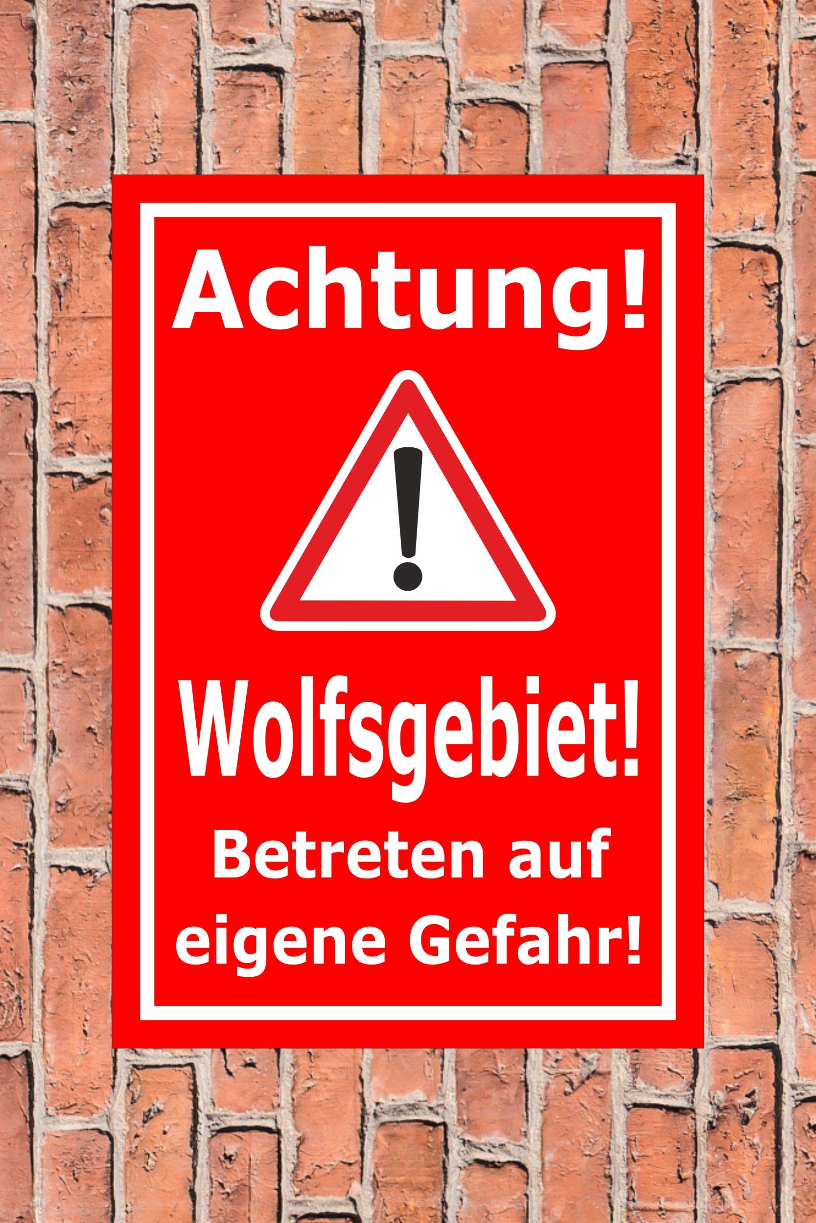 Weitere Schilder finden Sie in unserem Amazon Shop Sollten Sie nicht fündig werden, kontaktieren Sie uns gerne über das Verkäuferkontaktformular für ein individuelles Angebot. für den Forst oder Forstbetrieb, auch zum Naturschutz oder Wildschutz in einem Naturschutzgebiet Maße: 45x30cm - stabile 3mm Aluminiumverbundplatte -- ohne Bohrlöcher - UV-beständig, langlebig und kratzfest - Art., nr., S00351-022-B Der Druck ist UV-und witterungsbeständig, kratzbeständig und daher speziell auch für den Ausseneinsatz geeignet, bspw. Text des Schildes: Achtung - Wolfsgebiet - Betreten auf eigene Gefahr Hinweise: Montagematerial nicht im Lieferumfang enthalten. Tür, Mauer, Wand, Garagentor, Pfosten, Zaun, Hausmauer - das Schild kann überall einfach montiert werden Melis-Folienwerkstatt Schild Wolfs-Gebiet - 45x30cm - Bohrlöcher Melis Folienwerkstatt Aufkleber Wolfs-Gebiet - 45x30cm – 20 VAR S00359-098-A günstig auf : Kostenlose Lieferung an den Aufstellort sowie kostenlose Rückgabe für qualifizierte Artikel an der Hauswand oder dem Garagentor. Melis-Folienwerkstatt bietet Ihnen seit 2006 Qualität Made in Germany -- Produkte rund um Schilder, Aufkleber, Wandtattoos und die Werbetechnik Maße: 30x20cm - stabile 3mm Aluminiumverbundplatte -- mit 4 Bohrlöchern (4mm) in den Ecken - UV-beständig, langlebig und kratzfest - Art.nr Bestehende Schilder können wir gerne nach Ihren Wünschen anpassen. S00351-022-B Text des Schildes: Achtung - Wolf-Streifgebiet - Hunde anleinen und Kinder beaufsichtigen auffälliges Hinweisschild/Warnschild für Wald und Wiese, Feldwege, etc.