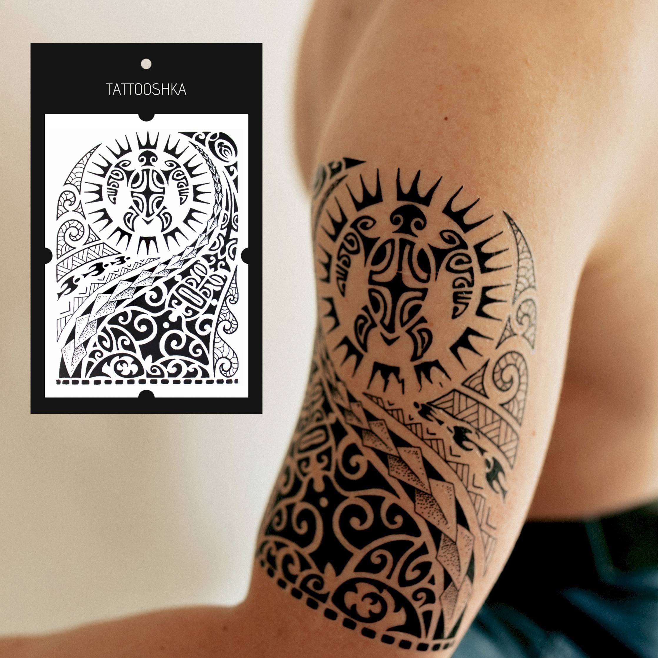 Polynesisches Tattoo | Temporäres Tattoo Von Polynesiern | Maori-Schildkröte | Großes Temporäres Tattoo | Maori-Armtattoo | Große Körperkunst Im Samoanischen Stil
