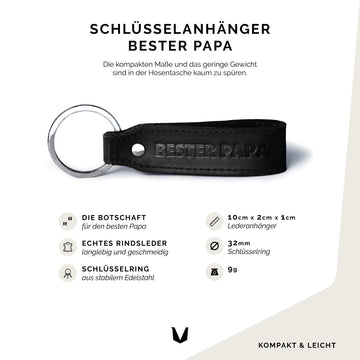 Benthill Schlüsseltasche Schlüsseltasche Echt Leder Schlüsselanhänger Graviert mit dem Wolfskopf aus dem Logo unsere Marke Wolfszeit. Schlüsselanhänger Vatertag Schlüsselanhänger Leder "Bester Papa Geschenke Für Papa Schlüsselanhänger Wir verwenden dazu nur Blankleder vom Rind mit einer Dicke von min., 3-4mm. Schlüsselanhänger aus echtem Leder bedruckt | Juerg Siegrist AG Der Anhänger wird bei uns im Haus nach Ihrem Kauf extra FÜR SIE hergestellt Echt Leder Schlüsselanhänger -Wolfskopf-. Egal ob Geburtstag, Weihnachten oder einfach so – mit diesem Anhänger verschenkst du Erinnerungen zum Mitnehmen. ✨ Warum du ihn lieben wirst:✔️ Echtes Leder – stilvoll & langlebig✔️ 3 austauschbare Druckknöpfe für Fotos, Namen oder Symbole✔️ Einzigartig & persönlich – perfekt als Geschenk✔️ Kompakte Größe – immer dabei Mach deinen Schlüsselbund zu etwas Besonderem – so hast du dein Lieblingsmoment immer bei dir! Er ist mit einer nichtrostenden (messing) Lochniete versehen und mit einen Schlüsselring ausgeliefert. Schlüsselanhänger aus Zinklegierung und echtem Leder(Kalbsleder) : leicht und langlebig Gehärtetes Glas : kratzfest und stoßfest Gib ihm ein Originelles Geschenk : Machen Sie ihn zum glücklichsten Vater und schenken Sie ihm dieses kleine Juwel voller Liebe Gefertigt aus hochwertigem Leder und mit drei austauschbaren Druckknöpfen, kannst du ihn ganz nach deinem Geschmack gestalten. Schlüsselanhänger aus echtem Rindleder 💖 Zur Zeit leider nur in schwarzem Leder lieferbar!