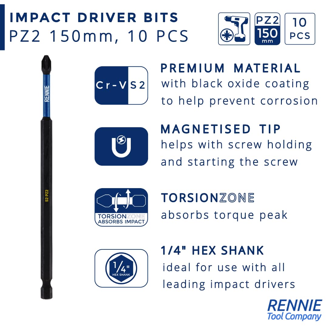 Dieses Schraubendreher-Bit-Set enthält 10 PZ2-Schlag-Bits, die eine Gesamtlänge von 150 mm haben. Sie werden in einem Kunststoff-Aufbewahrungskoffer geliefert Diese Schlagschrauber-Bits haben eine geschmiedete Spitze für erhöhte Schlagfestigkeit und eine längere Lebensdauer Der echte Schlag-Bit für die intensive Nutzung. Anti-Schock-Zone für Widerstand gegen hohe Drehmomente und starke Stösse. Verstärkung: Kopf mit Stützring. Anti-Bruch: verstärkte Torsionszone oben und unten, um Bruch vorzubeugen. Blaue Beschichtung zur Identifizierung des Mundstücks. DIN 6.3-Anschluss 20 x PZ2 150 mm lang magnetischer Schlagschrauber Bohrschrauber Bits Dieses Schlagschrauber-Bit-Set ist eine tolle Ergänzung für jedes Werkzeugset Sie werden in einem Kunststoff-Aufbewahrungskoffer geliefert. Diese langen PZ2-Schlagschrauber-Bits werden aus hochwertigem S2-Stahl und unter Verwendung der neuesten Fertigungstechnologien hergestellt. PZ2 Magnetische Schlag-Bits - Die magnetisierte Spitze hilft beim Halten und Starten der Schraube Ideal für den Dauereinsatz mit hohem Drehmoment. Diese können mit jedem Schlagschrauber-Bithalter oder jedem Standard-Bohrfutter verwendet werden, dank der universellen 1/4-Zoll-Sechskantschaftverschraubung Dieses Schraubendreher-Bit-Set enthält 10 PZ2-Schlag-Bits, die eine Gesamtlänge von 150 mm haben. Diese langen Schraubendreher-Bits sind kompatibel mit Dewalt Hitachi Mac Allister Einhell Erbauer Milwaukee Bosch Makita Bohrern und vielen mehr Dieses Schlagschrauber-Bit-Set wurde für den professionellen Einsatz hergestellt und ist daher ideal für Bauarbeiter, Elektriker, Heimwerker, Tischler usw. Unsere PZ2-Bits sind präzise gefräst für die optimale Passform. 2, Schraubenbits, Schraubendreher-Bits, Schraubenbits für Schlagschrauber usw., bezeichnet Diese PZ2-Bohrer sind ideal für den Dauereinsatz mit hohem Drehmoment. LitOrange PZ2 Magnetische Schlagschrauber Bits, 10 Stück, Strapazierfähig, Lang, Pozidriv Schraubendreher Bit Sets, 150 Mm, 100 Mm, 75 Mm, 50 Mm Diese Schlagschrauber-Bits haben eine geschmiedete Spitze für erhöhte Schlagfestigkeit und eine längere Lebensdauer, Diese Pozi 2 Schlagschrauber-Bits sind wärmebehandelt für eine längere Lebensdauer und weniger Bruch.