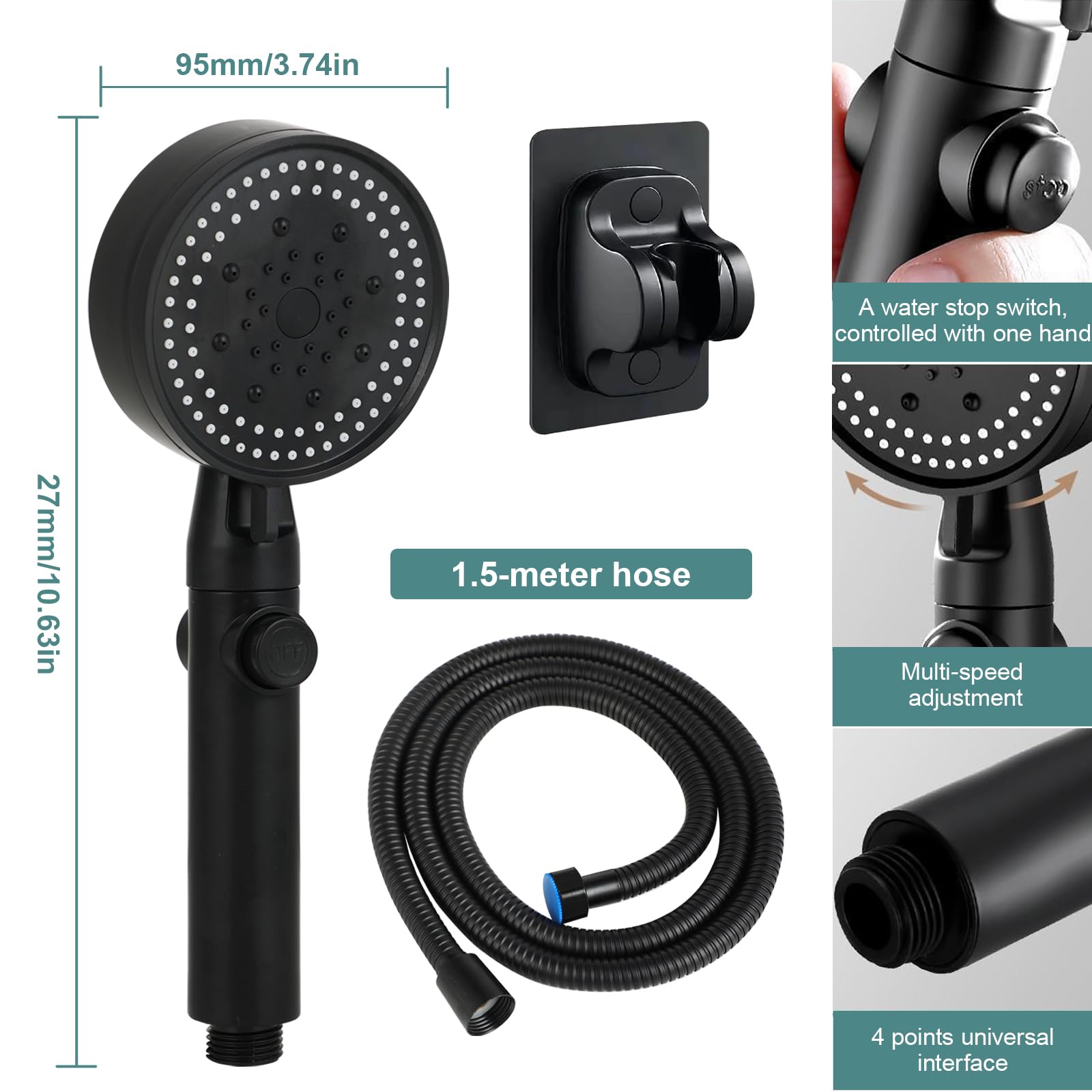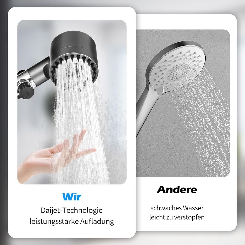 Unser wassersparender Duschkopf ist nicht nur umweltfreundlich, sondern auch kosteneffektiv. Ein idealer Zusatz für alle, die auf eine qualitativ hochwertige und hygienische Dusche Wert legen. Selbst Personen ohne technisches Know-how können sie in wenigen Minuten montieren. 【1,5 m hochwertiger Duschschlauch】:Der mitgelieferte 1,5 m lange Duschschlauch hat eine Kupferkappe, verstärkte Gewinderinge und eine geflochtene Schutzschnur. 【2 PP-Baumwollfilter für sauberes Wasser】:Mit 2 inbegriffenen PP-Baumwollfilter kann unsere Duschbrause Schmutz, Verunreinigungen und Chlor im Wasser effektiv entfernen. Seine hohe Flexibilität erlaubt Ihnen, sich bequem im Duschkabinnieren zu bewegen. jutyum Duschkopf mit 1.5M Schlauch, 6 Strahlarten Duschkopf Mit Schlauch Und Halterung Duschkopf Mit 1,5m Schlauch, Mit Brausekopf, 6 Strahlarten, Gold Shower Head Filter HANLIAN Hochdruck-Duschkopf mit Pause-Taste, 3 Sprühmodi, Duschkopf für Wohnmobil, Wassersparend, Ein-Aus-Dusche, Handbrause mit Schlauch und verstellbarer selbstklebender Halterung (schwarz Dadurch ist er robust und haltbar, ideal für den täglichen Gebrauch. Unsere Duschbrause mit Filter ist sehr einfach zu installieren und benötigt keine speziellen Werkzeuge. Professionelle Duschkopf mit Schlauch Unser wassersparender Brausekopf ist ein Meisterwerk fortschrittlicher interner Durchflusssperrtechnologie. Mit einem einzigen Knopfdruck lässt sich der Wasserfluss mühelos und effizient stoppen 【Ein-Taste-Wasserstop-Design und wassersparender Duschkopf】:Das praktische Ein-Taste-Wasserstop-Design ermöglicht es Ihnen, das Wasser schnell und einfach zu stoppen und wieder aufzunehmen. Duschkopf mit Schlauch 1.5M, 6 Strahlarten, Duschkopf mit Filter, Shower Head Wassersparend, Sparduschkopf mit Stopp-Funktion, Handbrause mit Halterung- Duschbrause für Bad & Dusche