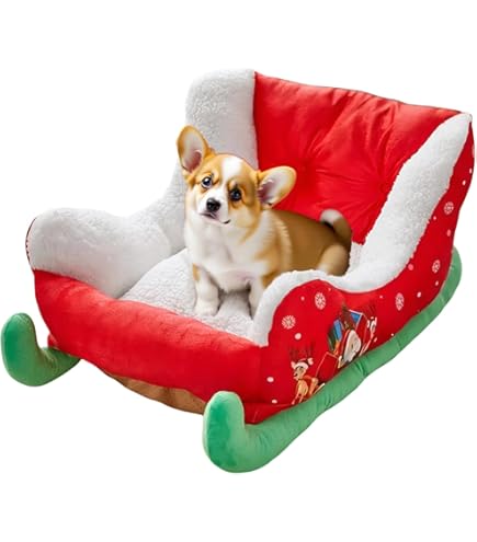 Dtaigou Weihnachtsschlitten-Katzenbett, Niedliches Schlitten-Design- Haustierbett, Haustier-Schlittenbett, Rotes Weihnachts-Katzen-Hundebett, Interessantes Rotes Weihnachts-Katzen-Hundebett