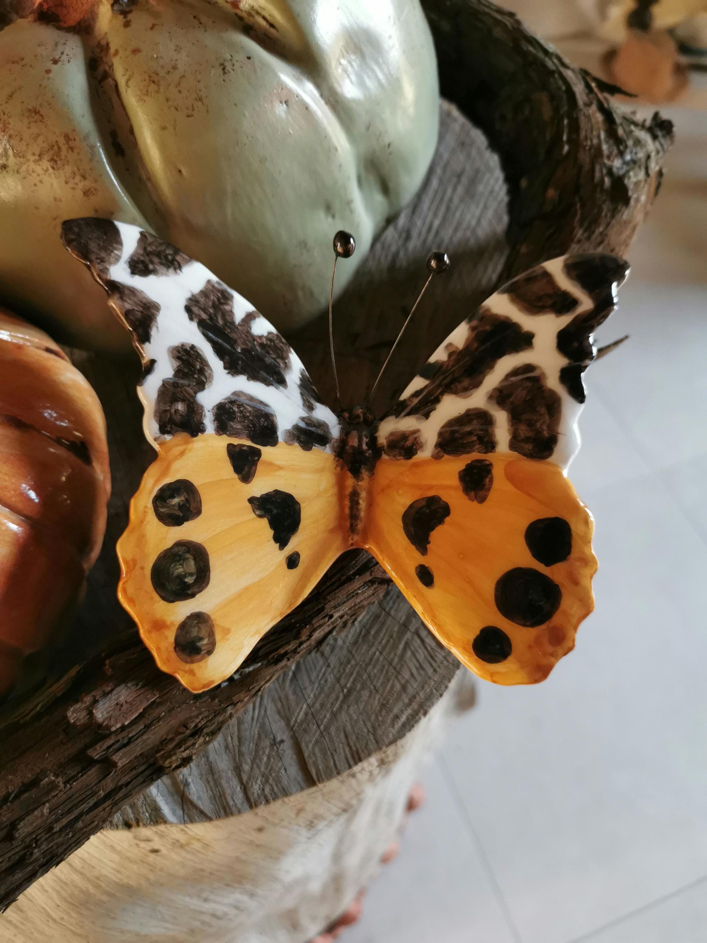 Lady mit Schmetterling aus Metall / Dekofigur – gelb-weiss – Höhe 80 c – Die Idee! Hurlebaus Simone Auf der Rückseite befindet sich ein Schlüssellochhaken für die Wandmontage , Größe: 11 x 8,5 cm Dieses moderne Stück Wandkunst misst 11 x 8,5 cm und ist für den Innen- oder Außenbereich geeignet. Wo auch immer Sie sich entscheiden, dieses Stück zu präsentieren, Sie werden nicht versagen, von der Handwerkskunst und Liebe zum Detail beeindruckt zu sein, die diesen Schmetterling so entzückend macht. OSTHEIMER Mobile Schmetterling Beweglich Online Kaufen Für den Innen- und Außenbereich geeignet Bestellen Sie noch heute Ihren kleinen Metall-Schmetterling und verleihen Sie Ihrem Haus oder Garten das ganze Jahr über einen Hauch von Sommer! Handbemalt und aus Metall gefertigt