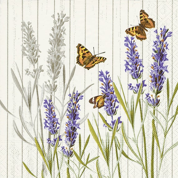 Decoupage Servietten Lavendel & Schmetterling: Blumenpapier Partyzubehör - Österreich
