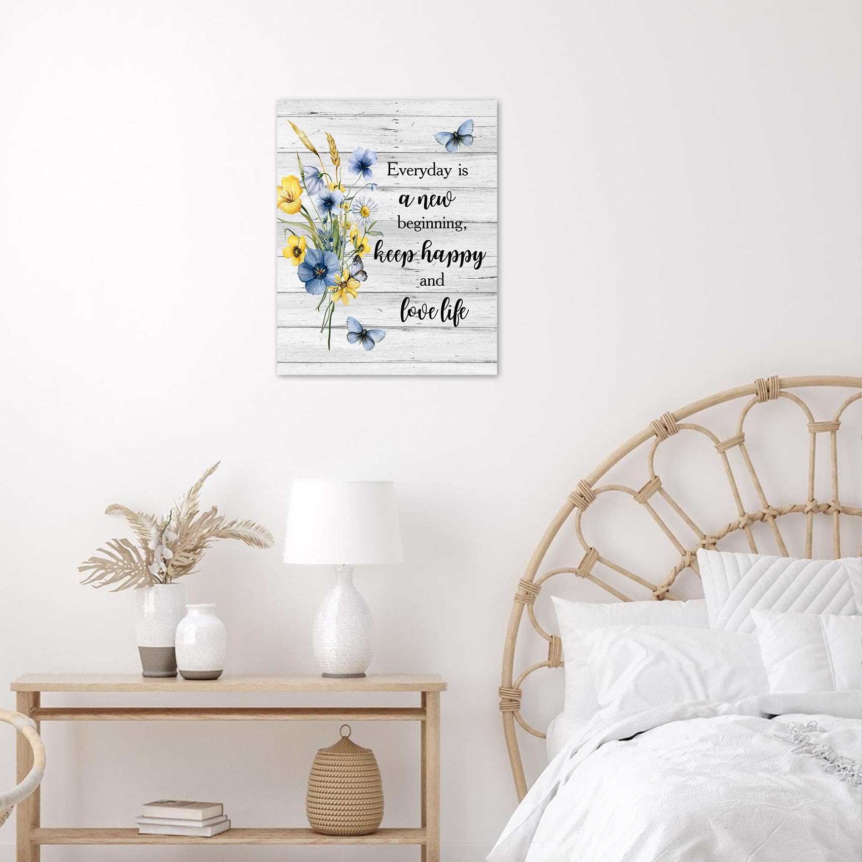 Inspirierende Wandkunst Wandbild Für Büro, Schmetterlinge Und Blumen Leinwandbild, Wanddekoration Für Frauen, Wohnzimmer, 4-teilig, Auf Leinwand Gedruckt, Gerahmt Zum Aufhängen (30,5 X 30,5 X 10,2 Cm