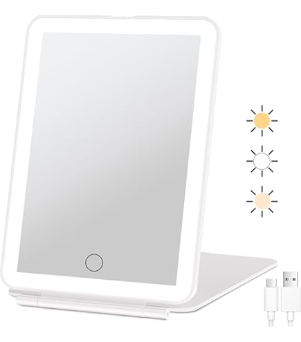Simplehuman Kosmetikspiegel - Wand-Schminkspiegel mit LED Beleuchtung, Edelstahl matt ST3003 REISESPIEGEL MIT GERINGEM GEWICHT Kompaktspiegel mit 3 Farblichtern 💖【Kosmetikspiegel mit Licht in 3 Farben:】 LED-Kosmetikspiegel mit 3 Farben: warmweiß, natürlich und weiß. Fascinate Kosmetikspiegel mit Beleuchtung, Wiederaufladbarer Doppelseitiger 10X/1X Vergrößerungsspiegel Schminkspiegel, 3 Lichtfarben, LED Schminkspiegel für Schreibtisch und Reisen von FASCINATE. Kosmetikspiegel günstig online kaufen bei Möbel & Garten Egal, ob Sie in einem Hotel, Zug, an der Universität oder zu Hause sind, dieser Spiegel macht es einfach, ihn in Ihre Tasche zu stecken, bereit für die Reise 【Muti-Funktionen Dimmbar Touchscreen】Dieser tischspiegel mit beleuchtung verfügt über ein hochempfindliches Touch-Button-Design, das eine längere Lebensdauer als herkömmliche mechanische Tasten hat. Wiederaufladbar mit eingebautem 1000mAh-Akku Das schlanke, leichte und kompakte Design macht den Eclipse zu Ihrem neuen Reisebegleiter. 【USB Wiederaufladbarer Tragbar Schminkspiegel】 Der led schminkspiegel mit licht verfügt über einen eingebauten 1000 mAh Lithium-Akku, der bis zu 250 Minuten kontinuierliche Arbeitszeit mit intensivem Licht nach vollständiger Aufladung bietet. Perfekter Kosmetikspiegel für Ihre Bedürfnisse und den täglichen Gebrauch. 💖[10X/1X Vergrößerung] Der beleuchtete HD-Spiegel mit 1-facher Vergrößerung spiegelt Ihr gesamtes Make-up wieder, und der 10-fach Vergrößerungsspiegel zeigt die Details Ihres Gesichts Dieser led spiegel schminkspiegel ist ein ideales Geschenk für Mutter, Schwester, Frau, Freundin, schmink Artists und so zum Valentinstag, Muttertag, Weihnachten, Jubiläen oder anderen besonderen Anlässen. Kompakter klappbarer Reisespiegel mit Licht., Der beste kabellose tragbare LED-Spiegel für Ihre Reise Fascinate Kosmetikspiegel mit Beleuchtung, Wiederaufladbarer Doppelseitiger 10X/1X Vergrößerungsspiegel Schminkspiegel, 3 Lichtfarben, LED Schminkspiegel für Schreibtisch und Reisen von FASCINATE. Das schlanke, leichte und kompakte Design macht den Eclipse zu Ihrem neuen Reisebegleiter. Egal, ob Sie in einem Hotel, Zug, an der Universität oder zu Hause sind, dieser Spiegel macht es einfach, ihn in Ihre Tasche zu stecken, bereit für die Reise. Geeignet für verschiedene Make-up-Arten. Das Licht blendet...