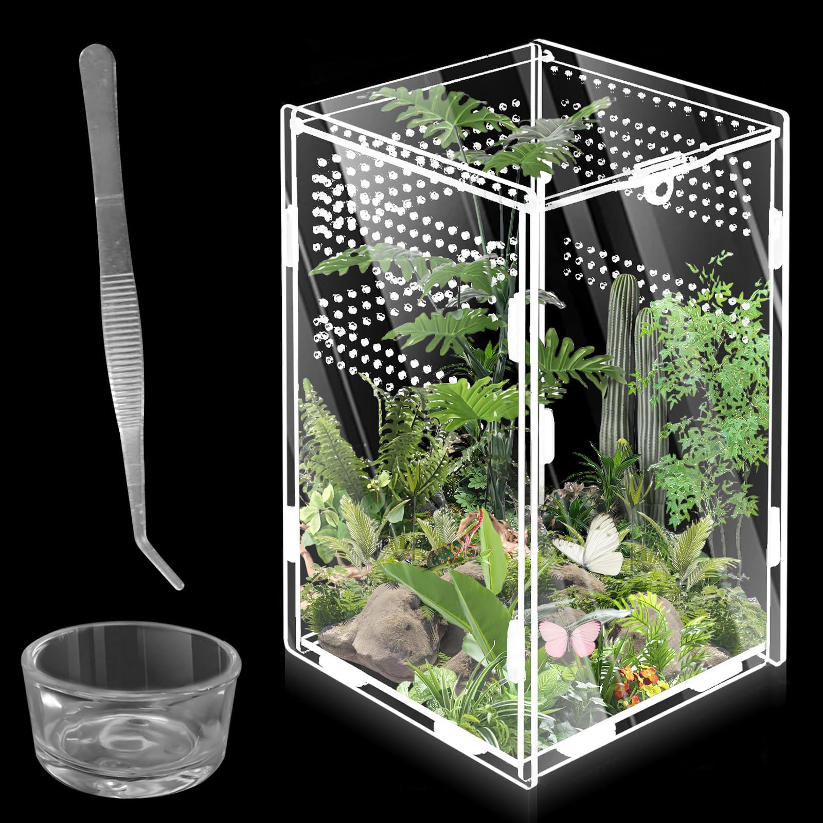 Mantis Den Acryl Terrarium - KrabblerHeime - Shop Der traditionelle Drehverschluss ist stabiler als ein Magnetverschluss und verhindert zuverlässig das Entweichen In diesem Set sind keine Schnecken enthalten !! Die Lochgröße ist klein genug, damit selbst kleine Insekten nicht entweichen können. Seitliche Tür gegen Ausbruch: Das seitlich öffnende Türdesign des Schnecken Terrariums für Kinder erleichtert das tägliche Füttern und die Pflege. Die Acrylplatten sind 4 mm dick, robust, langlebig, kratz- und stoßfest, zugleich glatt, schmutzabweisend, leicht zu reinigen sowie ungiftig und unbedenklich. Hochwertiges Material: Das Schnecken Terrarium ist gebrauchsfertig und muss nicht montiert werden. Kreatives Geschenk: Das Insekten Terrarium ist ein stilvolles Wohnaccessoire, das Kindern hilft, ihre Liebe zur Natur zu entwickeln, und ein ideales Geschenk für Reptilien- und Insektenliebhaber Biigdan Zylindrischer Terrarium, Vivarium, Acryl Terrarium Schnecken - 360° Panorama Reptilien Faunabox, für Springspinnen, Gottesanbeterin, Geckos, Schnecken, Laubfrösche, Käfer - Finden Sie alles rund um ihr Tier bei . Gratis Versand durch schon ab 29 Terrarium 20x20x30 2 Reptilien Terrarium Box,Acrylic Terrarium Schnecken Mit Belüftung,360 ° Transparent Acryl Terrarium 120x60x60 Entdecke das praktische und stilvolle Acryl Terrarium für deine Schnecken und Reptilien. Mit einem transparenten Design sorgt es nicht nur für eine ansprechende Optik, sondern ermöglicht auch eine 360°-Sicht auf Deine Lieblinge Die Fix und Fertig Schneckenerde könnt Ihr gleich in die Faunabox geben, da diese schon aufgekalt ist. Luftzirkulation und auslaufsicherer Boden: Die Belüftungslöcher an Ober- und Oberseite des Mini Terrariums sorgen für gute Luftzirkulation, verringern Atemwegserkrankungen und bakterielle Infektionen bei Haustieren, beseitigen Gerüche und verhindern übermäßige Feuchtigkeit. Das Set ist nur für kleinbeleibende Schnecken geeeignet. (Vor Gebrauch die Schutzfolie entfernen)