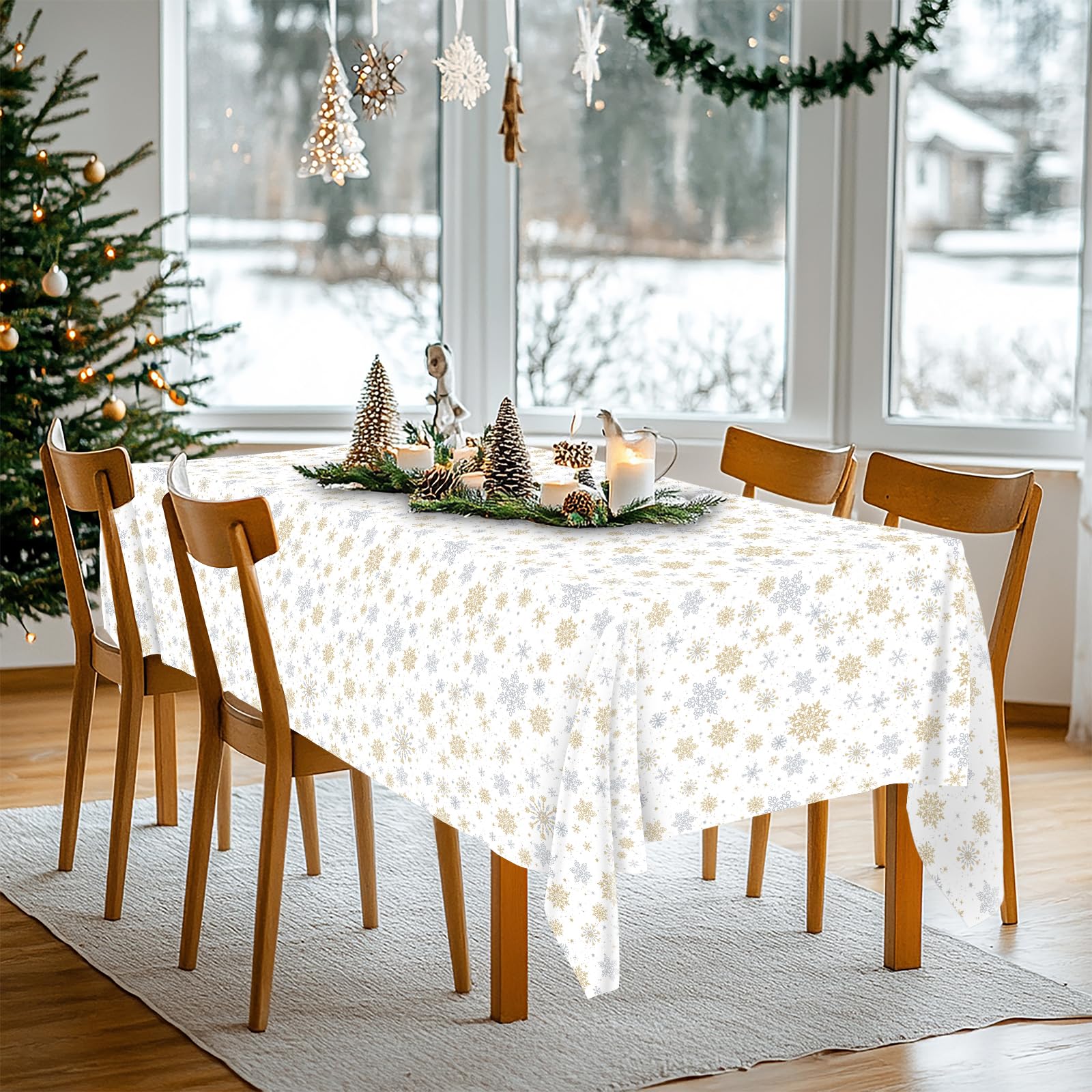 Kesfey Weihnachtstischdecke, Schneeflocken-Tischdecke, Weiße