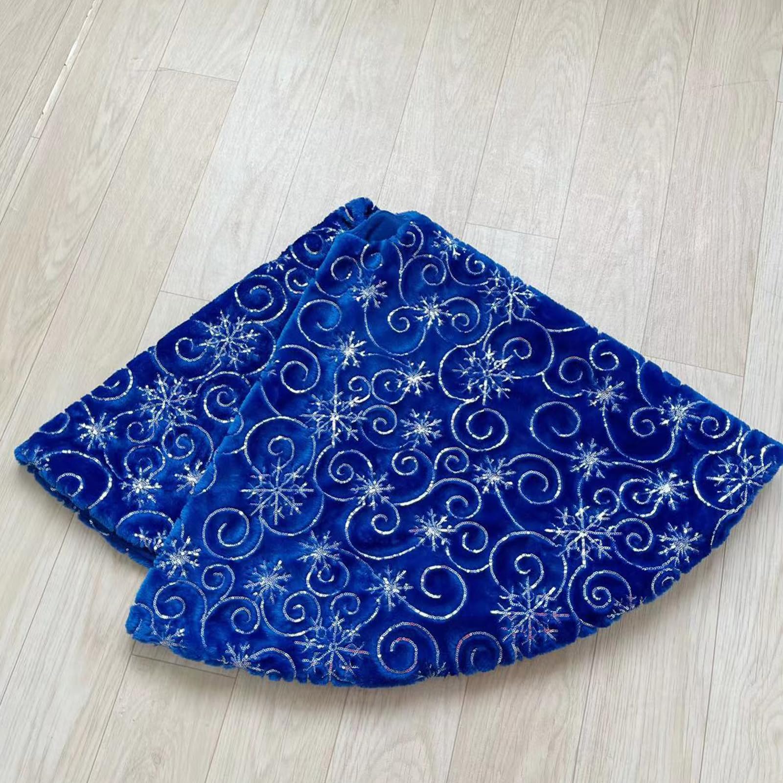 Uhrwerk) Weiche Kiefernbau-Bodenatte Blütenblätter Rüschen... Lanpn Weihnachtsbaum Decke Christbaumdecke 90 cm, Groß Weihnachtsbaumdecke Rund Ein Glasteller Mit Schneeflockenmuster Für Torten Oder Guezl | Kaufen Weihnachtsbaum Decke Blau Hochwertiges Material: Dieser Weihnachtsbaumrock ist aus weichem Kunstfell gefertigt und mit goldenen Schneeflocken aus Pailletten bestickt. Der verdeckte Klettverschluss und das doppellagige Design lassen sich leicht unter Bäumen befestigen