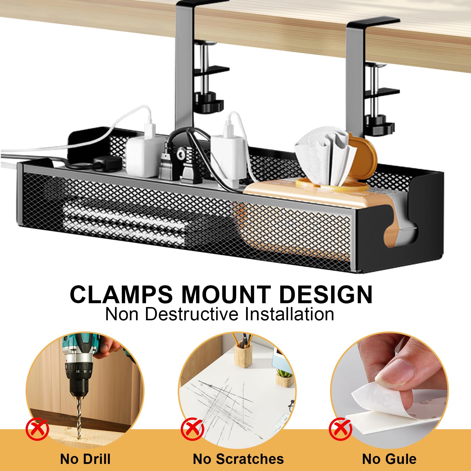 ENGYNC Kabelkanal Schreibtisch Ohne Bohren Schwarz