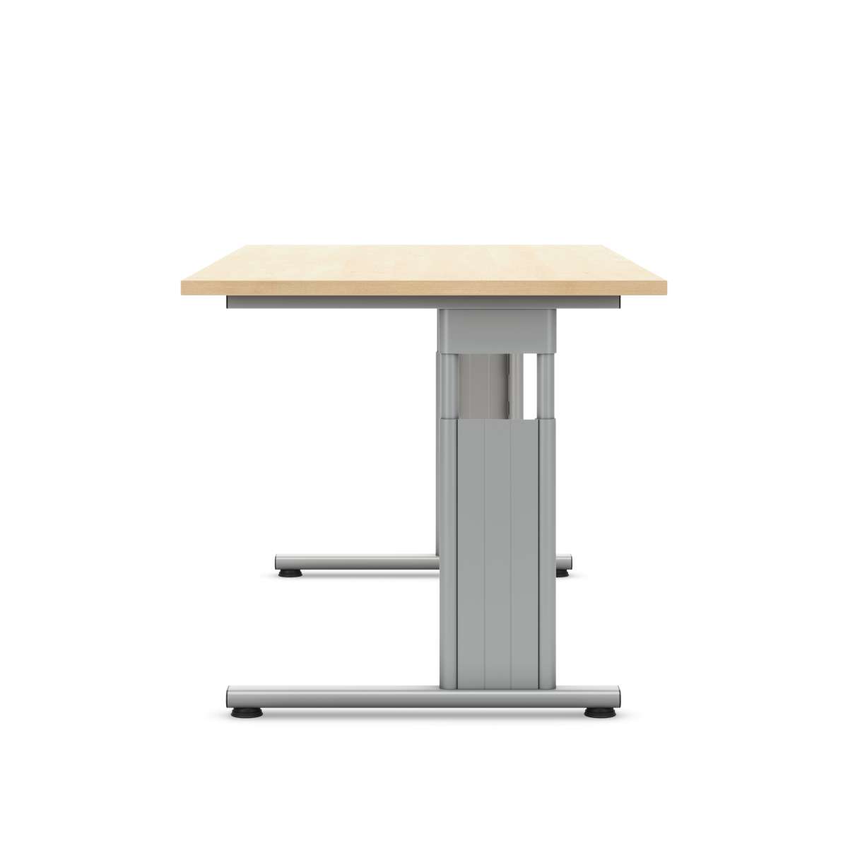 Entscheidet man sich für das Normallieferprogramm, stehen einem 2 Dekore mehr zur Auswahl. Das renommierte C-Fuß Gestell ist ein zeitloser Klassiker und begeistert noch immer viele Kunden. Für die passende Sitzposition sorgt die Höhenverstellung, die eine Arbeitsposition von 680 bis 820 mm bietet Set enthält: TischplatteTraverseFüße Schreibtisch Elektro Flex PC-Form, rechts, höhenverstellbar, 1.800 x Zuführung optional über Kabelspirale. Befestigung erfolgt mittels Verkettungskit und zusätzlichen Stützfüßen. Traverse als Kabelkanal zur sauberen Verlegung von Kabeln nutzbar , Made in Germany Schreibtisch C-Fuß – zeitlos & praktisch fürs Büro 25mm starke melaminharzbeschichtete Tischplatte mit 3mm abgerundeter ABS-Kunststoffkante C Fuß Büromöbel Schreibtisch, Rechts, C-Fuß Flex 135°, 2166x1131, Ahorn/Silber - Kauf Büro Schreibtisch Flex ineinander verbundenes Traversen-Stahlgestell für eine hohe Stabilität C Fuß Pro Technische Daten: Tischplatte: Stabilität und Belastbarkeit durch 25 mm Arbeitsplatte (beidseitige Melaminharz-Beschichtung) mit 3 mm ABS Umleimer.Radius 3 mm gerundet.
