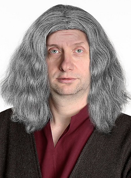 Schulterlange Perücke Grau Gewellt
