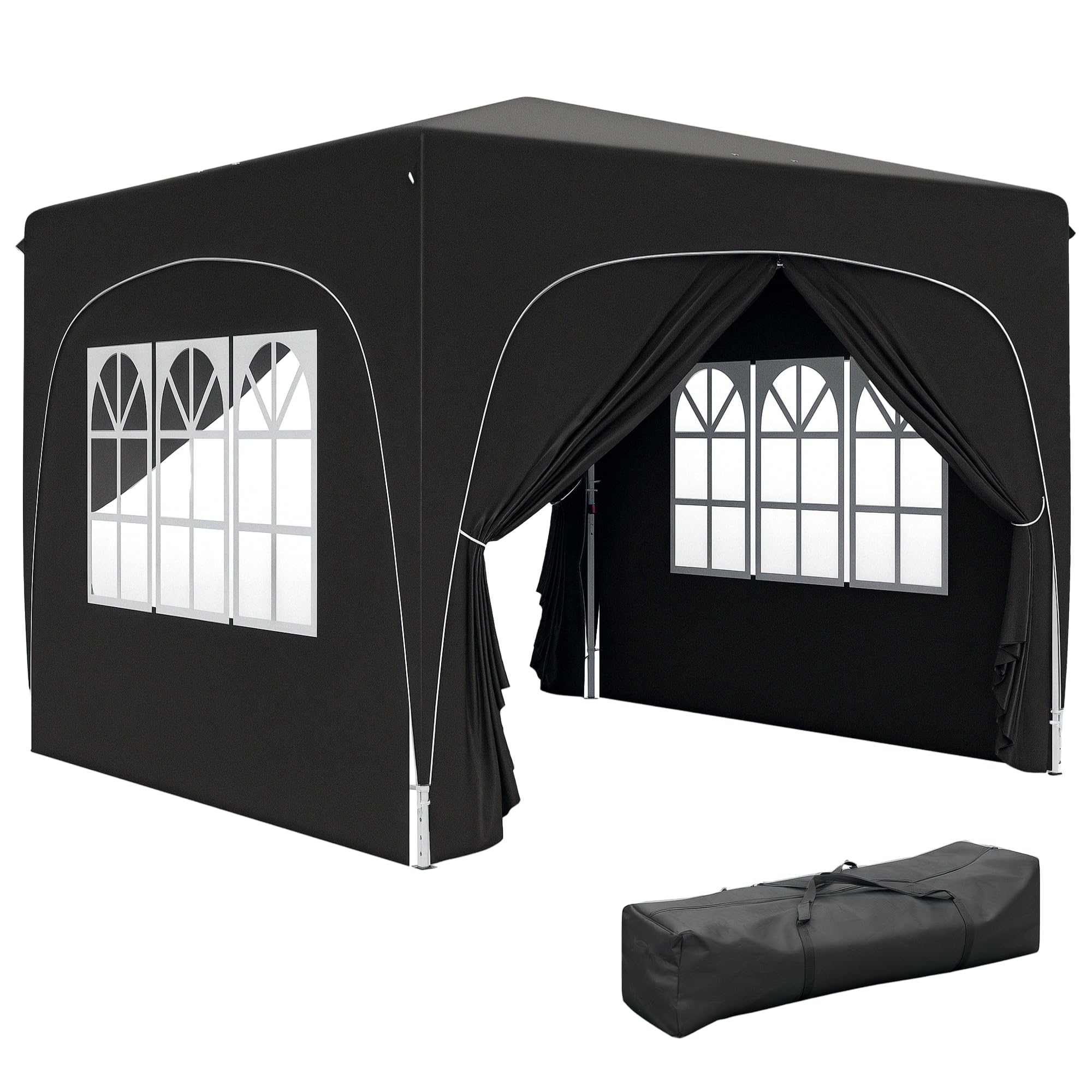 Outsunny Pavillon 3x3m, Wasserabweisend Stabil Winterfest Pop-up Faltpavillon, UV Schutz 50+, Faltbar Partyzelt Gartenzelt Mit 4 Seitenteilen Tasche Gartenpavillon Für Camping Garten, Dunkelblau