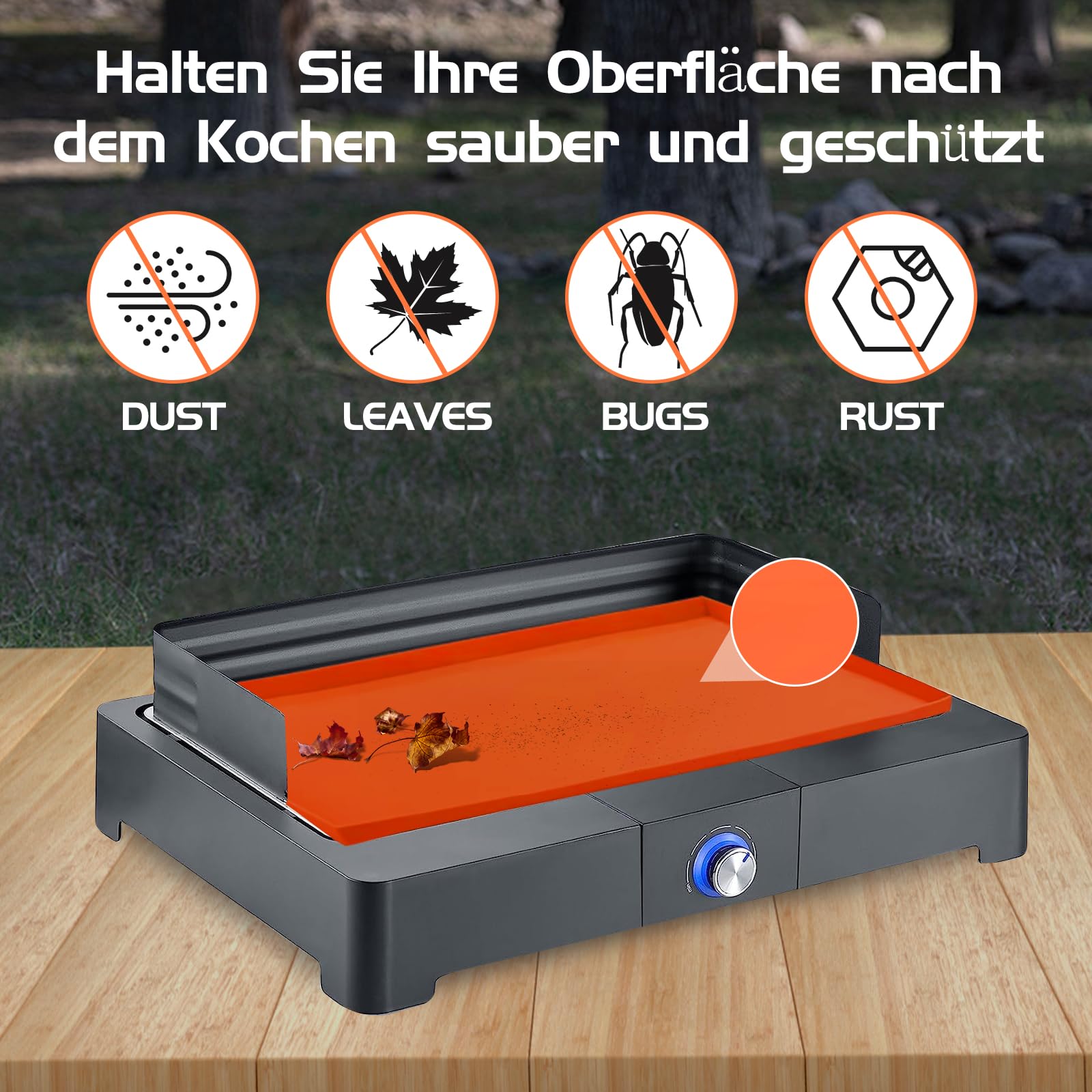 Die Grillmatte für Blackstone Grill ist antihaftbeschichtet, flexibel, weich und hitzebeständig bis 200 °C. Im Vergleich zu traditionellen Grillabdeckungen ist die Grillmatte einfach genug, um verwendet zu werden. Die 36-Zoll-Grillmatte ist fest am Rand des Grills befestigt, was nicht nur die Oberfläche des Grills vor Feuchtigkeit und Sauerstoff schützt, Oxidation und Rost effektiv verhindert, sondern auch die Blackstone Grillplatte jederzeit trocken und sauber hält. Die Blackstone Matte kann zur Aufbewahrung während des Backens ordentlich gefaltet werden und schützt die Oberfläche der Bratpfanne vor unnötigen Kratzern und Schmutz, wenn sie nicht verwendet wird. Einfach zu bedienen und zu reinigen: 36 Silikonmatten für Blackstone-Grillplatten. Im Gegensatz zu anderen Designs mit niedrigem Rand kann unsere Blackstone-Matte mit hohem Rand Feuchtigkeit und Schmutz sammeln, wodurch die Oberfläche Ihrer Grillplatte trocken, sauber und einsatzbereit bleibt. Wischen Sie es einfach mit einem feuchten Tuch ab oder stellen Sie es in die Spülmaschine. Wir stellen unsere perfekte Ergänzung für Ihre 91,4 cm große Blackstone-Grillplatte vor – die speziell entworfene 91,4 cm große Grillmatte. Entwickelt, um eine gute Passform ohne Zuschneiden zu bieten, sorgt diese Grillmatte für kein Wackeln oder Verrutschen und bietet ganzjährigen Schutz für Ihre Grilloberfläche Blackstone Griddle Accessories 91cm Grillmatte Für Gasgrill Grillmatte Schutzmatte Abdeckung Für Silikon Schützt Den Grill Vor Nagetieren, Insekten Schmutz Und Rost Staubschutz Für Die Ganze Saison Wiederverwendbar Blackstone Grill 【Geeignete Größe】: Die Blackstone Silikonmatte ist 89,9 x 54,8 x 2,5 cm groß und ist speziell für Blackstone Grillplatten 91,4 cm und die Grillabdeckung passen perfekt. Verlängern Sie die Lebensdauer Ihrer Backstone-Grillplatte: Die Blackstone-Matte verlängert die Lebensdauer Ihrer Grillplatte und spart Ihnen Zeit und Mühe. Grillmatte für Gasgrill Test & Vergleich » Top 10 im November 2023 Hochwertiges Silikon in Lebensmittelqualität: Die Blackstone Silikon-Grillabdeckung ist aus 100 % strapazierfähigem, lebensmittelechtem Silikon. Product Summary Die Silikon-Grillmatte ist das perfekte Zubehör für Ihre Blackstone 91,4 cm Grillplatte. Mit ihr bleibt Ihr Grill sauber und geschützt vor Schmutz, kleinen Tieren und Rost – so können Sie unbeschwert grillen