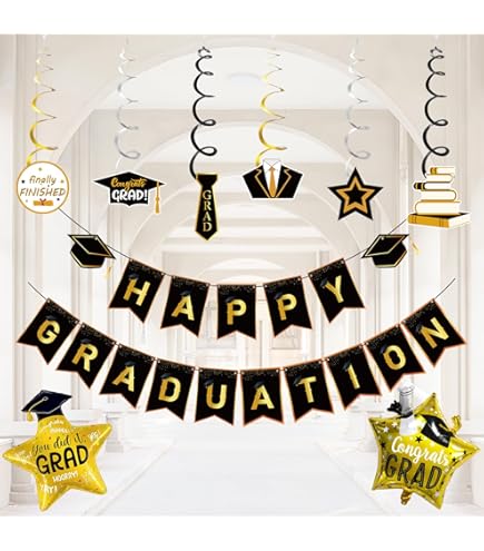 Graduation Deko Schwarz Gold Abschluss Deko 2025 Abitur Bachelor