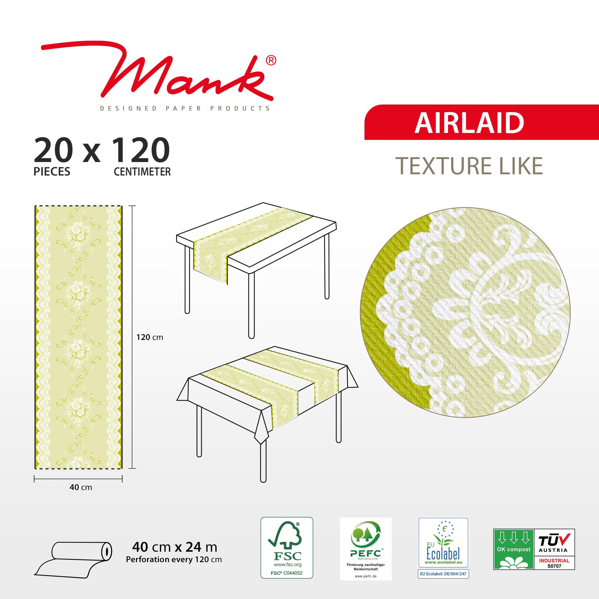 Jede serviette grün aus unserem Sortiment ist hochwertig verarbeitet und garantiert eine hohe Strapazierfähigkeit. Die servietten sind in einer Größe von 40x40 cm erhältlich und kommen in praktischen 50er Packs. Serviette Hochzeit In Champagner-Hellgrün Aus Linclass® Airlaid 40 X 40 Cm 12 Stueck Die servietten grün weiss und servietten weiß grün bieten zusätzliche Vielseitigkeit und können je nach Dekoration angepasst werden. Für den Herbst sind unsere servietten herbst 40x40 in warmen Farbtönen ideal. Airlaid Servietten ab 50 Stück in stoffähnlicher Qualität und riesiger Motivauswahl günstig kaufen ✓ MADE IN GERMANY ✓direkt vom Hersteller Netzshopping: Entdecken Sie mühelos Shopping-Angebote auf Netzshopping. Die servietten maigrün verleihen jedem Tisch eine frische und lebendige Note, die perfekt zum Frühling passt. Stoffservietten Grün Servietten Ornament Schwarz Premium Airlaid, STOFFÄHNLICH | 125 Stück | 40 X 40cm Servietten Dunkelgrün PERFEKT FÜR ELEGANTE ANLÄSSE: Unsere servietten grün hochzeit sind ideal für Hochzeitsfeiern und verleihen Ihrem Tisch eine elegante Note. IDEAL FÜR DEN FRÜHLING: Die servietten frühling bringen frische Farben auf Ihren Tisch. Besonders beliebt sind auch die servietten 40x40, die in verschiedenen Grüntönen erhältlich sind, wie zum Beispiel servietten grün 40x40 und servietten apfelgrün. HOCHWERTIGE AIRLAID SERVIETTEN: Unsere airlaid servietten 40x40 sind in verschiedenen Grüntönen erhältlich, einschließlich servietten 40x40 grün und servietten 40x40 stoffähnlich. VIELSEITIG UND STILVOLL: Ob für eine grüne servietten hochzeit oder eine goldene Hochzeit, unsere servietten hochzeit grün und servietten goldene hochzeit 40x40 passen perfekt zu jeder Feier. Vertrauen Sie auf die Qualität der Mank GmbH Airlaid Serviette Franziska in Grün und machen Sie Ihre nächste Veranstaltung unvergesslich. FÜR JEDE GELEGENHEIT GEEIGNET Unsere stoffähnliche servietten in grün sind ideal für jeden Anlass, von einer Hochzeit bis zu einem festlichen Dinner. Die servietten grün weiss und servietten weiß grün bieten zusätzliche Vielseitigkeit und können je nach Dekoration angepasst werden Diese servietten sind nicht nur optisch ansprechend, sondern auch funktional und langlebig. Unsere servietten airlaid 40x40 zeichnen sich durch ihre stoffähnliche Haptik aus, die ein luxuriöses Gefühl vermittelt. Für ein besonderes Design bieten wir auch servietten grün mit muster an, die jedem Tisch eine elegante Note verleihen.