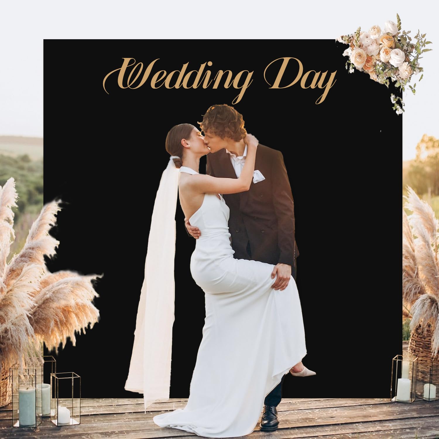 MODFUNS Hochzeitsbogen-Abdeckung, Schwarz, Spandex, 2 X 2 M, Quadratischer Ballonbogenständer, Dehnbar, Vintage-Chiara-Abdeckung Für Hochzeitszeremonie, Geburtstag, Partyzubehör