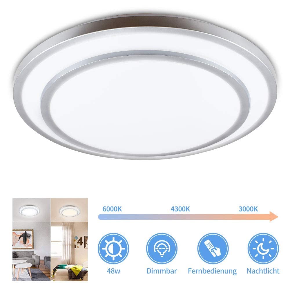 Hell und sparsam: Diese Deckenleuchte spart mehr als 85 % der Beleuchtungs- und Stromkosten und verursacht weniger CO2-Emissionen im Vergleich zu anderen Lampen. Andere Fernbedienungen können die Lampe beschädigen. Wir widmen uns der kontinuierlichen Verbesserung unserer Produkte nach Kundenbewertungen. Depuley Modern Arc Led Padló Lámpa Parasztház Álló Lámpák Függő Gleichzeitig kann diese Innenleuchte dank ihrer energiesparenden 2835 LED-Chips und des Lampenschirms mit hoher Lichtdurchlässigkeit einen hellen und klaren Strahl ohne Blendung abgeben. 48 W LED-Deckenleuchte, dimmbar: Elegante Optik: Design aus gebürstetem Aluminium, mit 2 Schichten schwarzem Rand, 3 Lichter (kaltweiß, natürliches Licht, warmweiß) und die Helligkeit des Lichts kann über die Fernbedienung eingestellt werden. Deckenlampe Eckig LED-Deckenleuchte, Schwarz, Wellendesign, 139,5cm Lang, Modern Deckenleuchte Dimmbar Sorgenfreie Sicherheit: Der hintere Isolationsantrieb kann die durch Spannungs- und Stromstöße verursachten Risiken wie Flackern und Schnarchen oder sogar Stromlecks wirksam lösen. Minimalismus: Das superdünne Erscheinungsbild nimmt weniger Platz ein und beeinträchtigt den Raum kaum. Deckel aus Acrylkunst: Der Lampenschirm ist aus hochwertigem Acrylmaterial und der Rand aus lackiertem Metall ist energiesparend und ungiftig. sowie die Dimmung der Lichtfarbe in 3000K-6500K zur Auswahl. Wirklicher: CRI85+: Diese Deckenlampe verfügt über einen CRI 85+, der es ermöglicht, sich der tatsächlichen und originellen Farbe des Objekts in seinem Licht näher zu kommen und Ihnen einen helleren und präziseren Lichteffekt zu verleihen. Das richtige Licht ist wichtig., Spezifikationen: Leistung: 48 W. Zusätzlich bietet Depuley Ihnen weitere Leuchten für Ihre Vorliebe in unserem Shop. Möchten Sie noch eine zufriedenstellende Leuchte auswählen? Sind Sie noch unzufrieden? Diese 48 W Deckenleuchte ist ein absoluter Blickfang. Darüber hinaus können Sie die anderen Einstellungen praktisch und schnell über die Fernbedienung einstellen. Hinweis: Steuerung nur über die mitgelieferte Fernbedienung, nicht für den Hausdimmer geeignet. Depuley 48 W Modern LED Flush Mount Ceiling Light with Remote Control, 18 Inch Dimmable Nickel Ceiling Light Round for Bedroom, Kitchen, Night Light, 3000 K - 6000 K, 3 Colours Share Darüber hinaus ist der Spalt zwischen der Decke und der Decke sehr tief, sodass sich nicht leicht mehr Staub ablagern kann, wodurch die versteckten Gefahren verringert werden und die sichere Lebensdauer verlängert wird. Es ist einzigartig, was Ihnen eine angenehmere Beleuchtung verleiht. Nova Luce BILBAO 9500822 LED Deckenleuchte Schwarz 25W