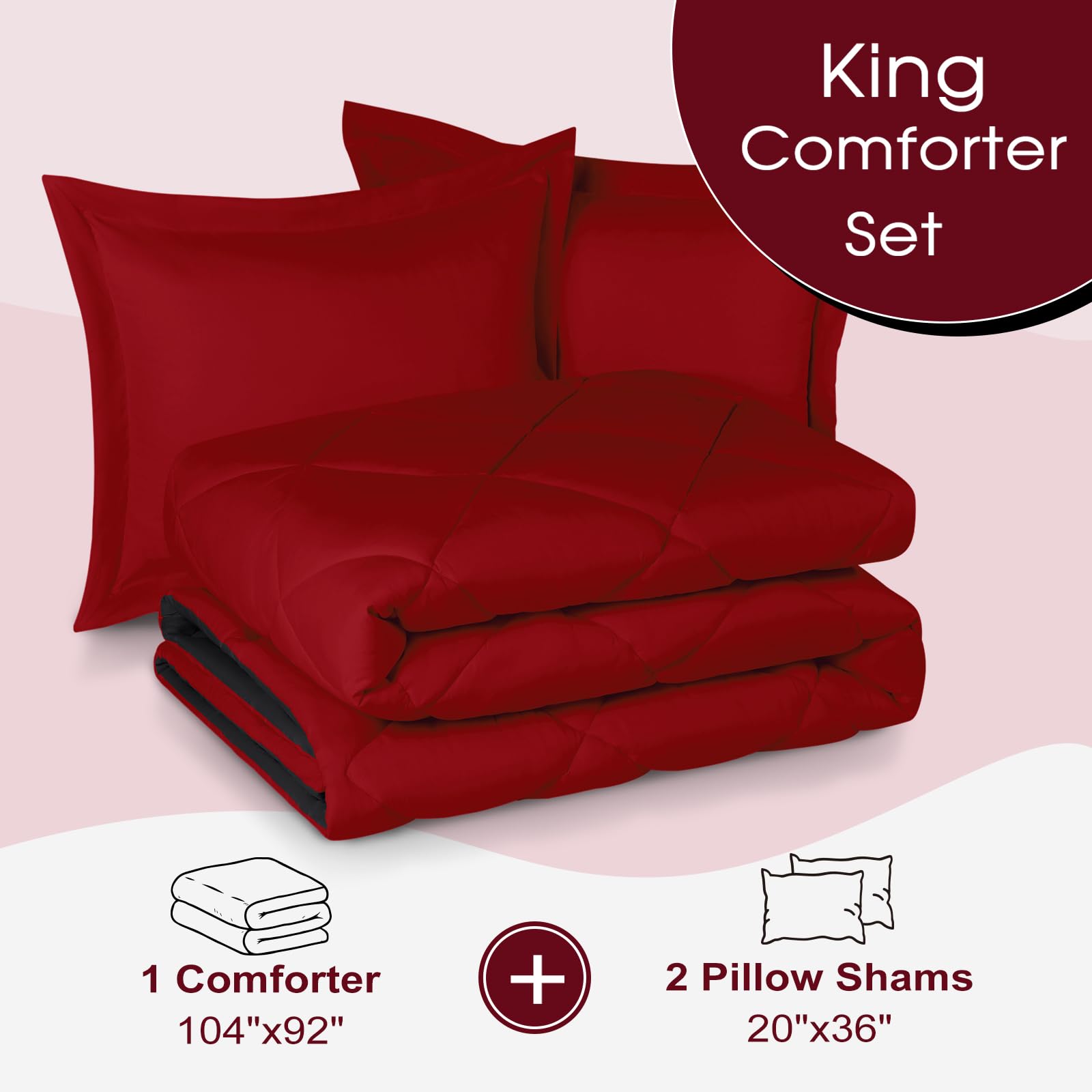 Basic Beyond King Size Bettwäsche Set – Rot Und Schwarz, Wendbares King Size Bettwäsche Set Für Alle Jahreszeiten, 1 Bettdecke (264,2 X 233,7 Cm) Und 2 Kissenbezüge (50,8 X 91,4 Cm + 5,1 Cm