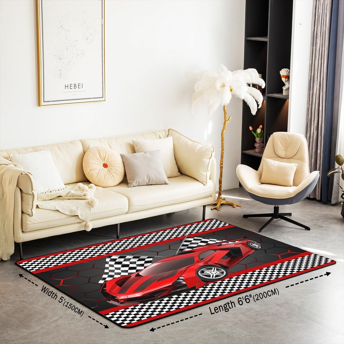Jejeloiu Rennwagenteppich Für Kinder, Jungen, Schwarz-weiß, Karierte Flagge, Druck, Dekoratives Teppich-Set, Extremsport, Wohnzimmer, Teppiche, 12,7 X 17,8 Cm, Schlafzimmer, Dekoration, Wabenmuster