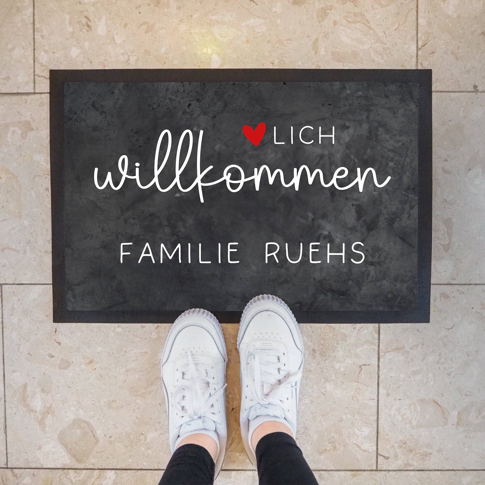 Herz & Heim® Personalisierte Schwarze Fußmatte Mit