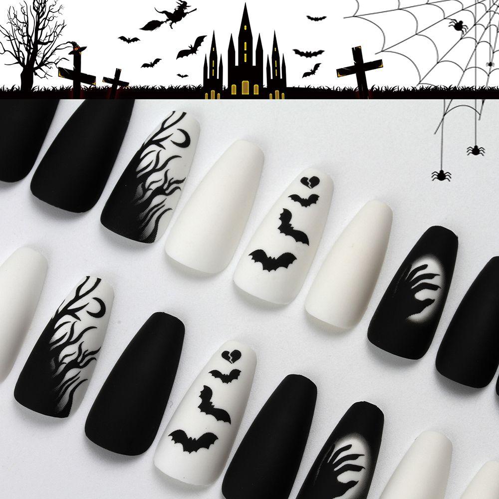 JUSTUSNX 24pcs Schwarze Kurze Gefälschte Nägel Kürbis Falsche Nägel