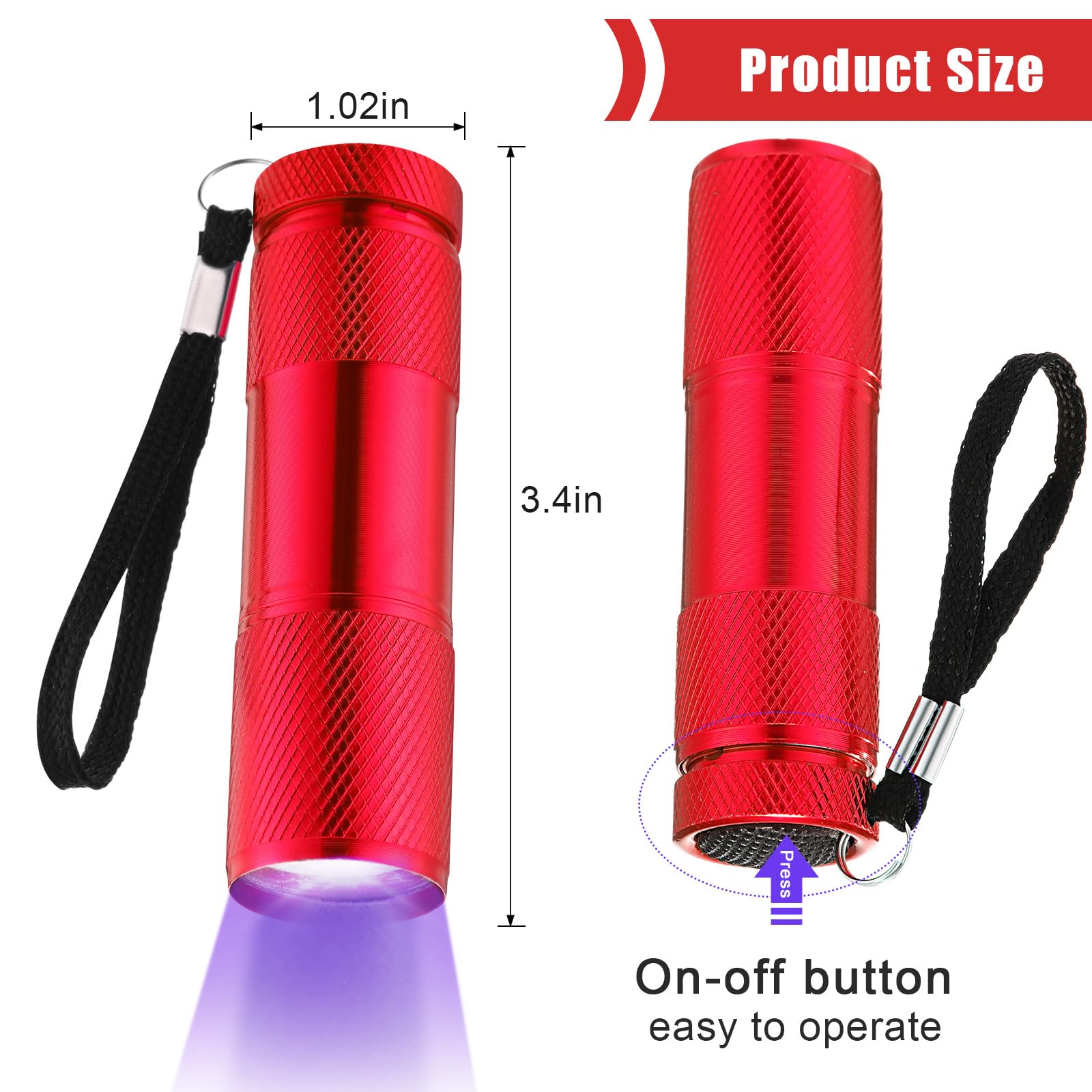 Beaufsichtigung durch Erwachsene ist erforderlich, wenn es von Ihren kleinen Kindern gespielt wird. Bitte beachten Sie, dass die UV-Taschenlampe nicht direkt mit bloßen Augen bestrahlt werden darf Mehrere Anlässe: Die Hand-Taschenlampen sind geeignet, um Tierurin, Haustierflecken, Lebensmittelflecken, Raumreinigung zu erkennen und nach Skorpionen zu suchen, die leicht Währung, Führerschein, Antik und Gasleckkontrolle authentifizieren können Merkmal: Praktische Funktionen: Die Hand-Taschenlampe kann verwendet werden, um Flecken, Haustierurinflecken und andere unsichtbare Flecken auf Stoff und Textilien freizulegen, um die unangenehmen Stellen zu finden und sie rechtzeitig zu reinigen. Ausreichende Lampen: Die UV-Taschenlampe ist mit 9 kleinen LED-Lichtern ausgestattet und wird mit 3 AAA-Batterien betrieben, die nicht im Lieferumfang enthalten sind; die Beleuchtungszeit kann mit einem Heckknopfschalter für 6 bis 8 Stunden fortgesetzt werden, und die Wellenlänge kann 395 bis 400 cm erreichen. Bitte erlauben Sie leichte Farbunterschiede aufgrund unterschiedlicher Monitore. Die tragbare Größe der schwarzen UV-Licht-Taschenlampe kann einfach mit einer Hand bedient werden Zinn Anfragen Parlaent uv led 365n unzureichend Vielleicht Schädel UV Taschenlampe 2 Stück Mini UV Schwarzlicht Taschenlampe mit 12 LEDs, Ultraviolettes Licht mit 395nm für Geocaching, Heimtierurindetektoren, Haustiere Urin-Detektor usw Anmerkungen: Bitte erlauben Sie geringfügige Maßfehler aufgrund manueller Messung. Die AAA-Batterie ist nicht im Lieferumfang enthalten. 【Richtige Geschenke】Diese Schwarzlicht-Taschenlampen sind auch ein schönes Geschenk für Ihre Familie, Freunde, Nachbarn und Kollegen an Thanksgiving, Halloween, Weihnachten, Geburtstag und anderen Festivals, spielen Halloween-Süßigkeitenjagd im Hinterhof, erkennen Sie den Reinigungszustand im Hotelzimmer während einer Geschäftsreise Nicht direkt mit bloßen Augen bestrahlen. Mini Uv Lampe BOSITE 10W Schwarzlicht Röhre,Schwarzlicht UV LED Lamp Bar 395nm Mit Uv Laser