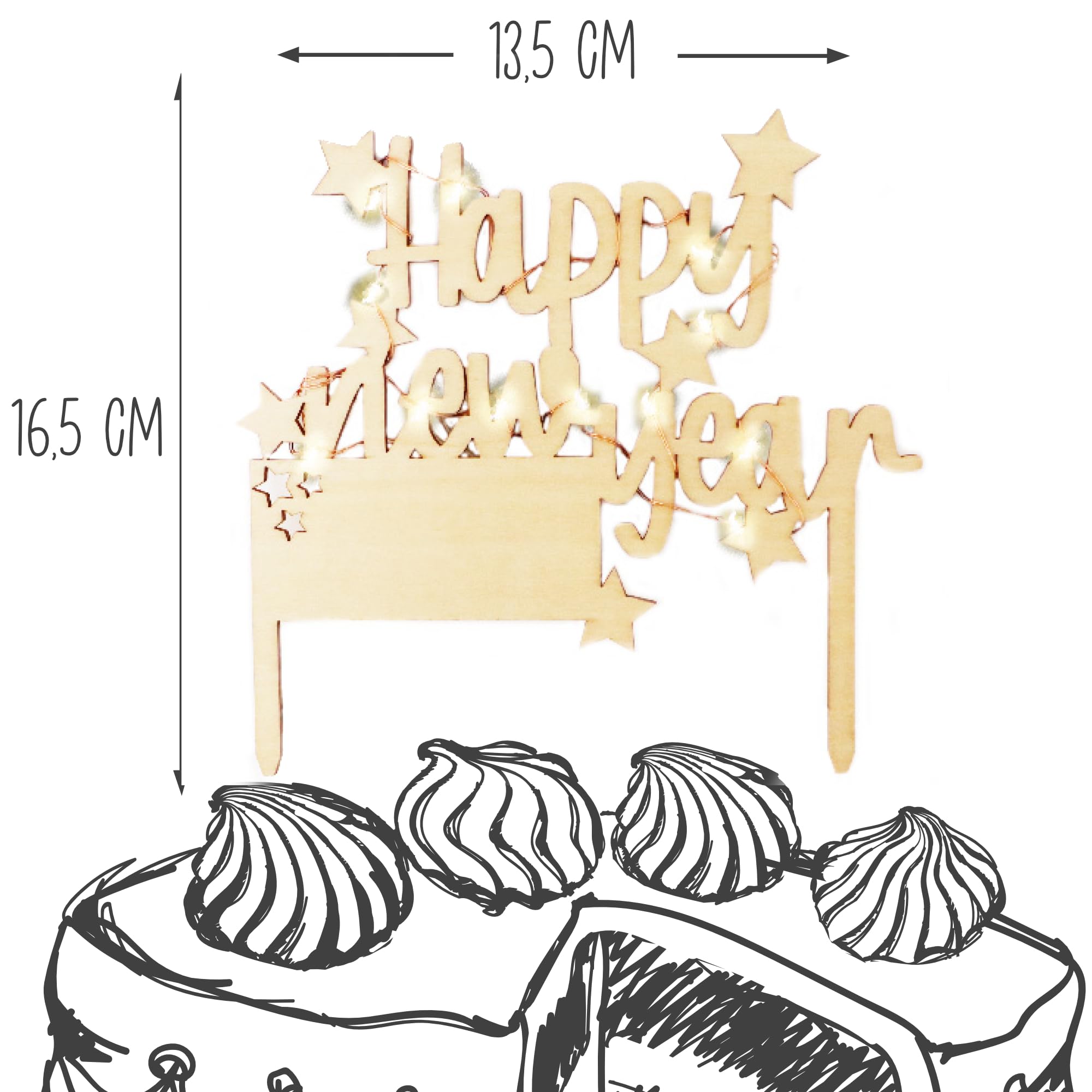 ScrapCooking – Cake Topper LED "Happy New Year" – Beleuchtete