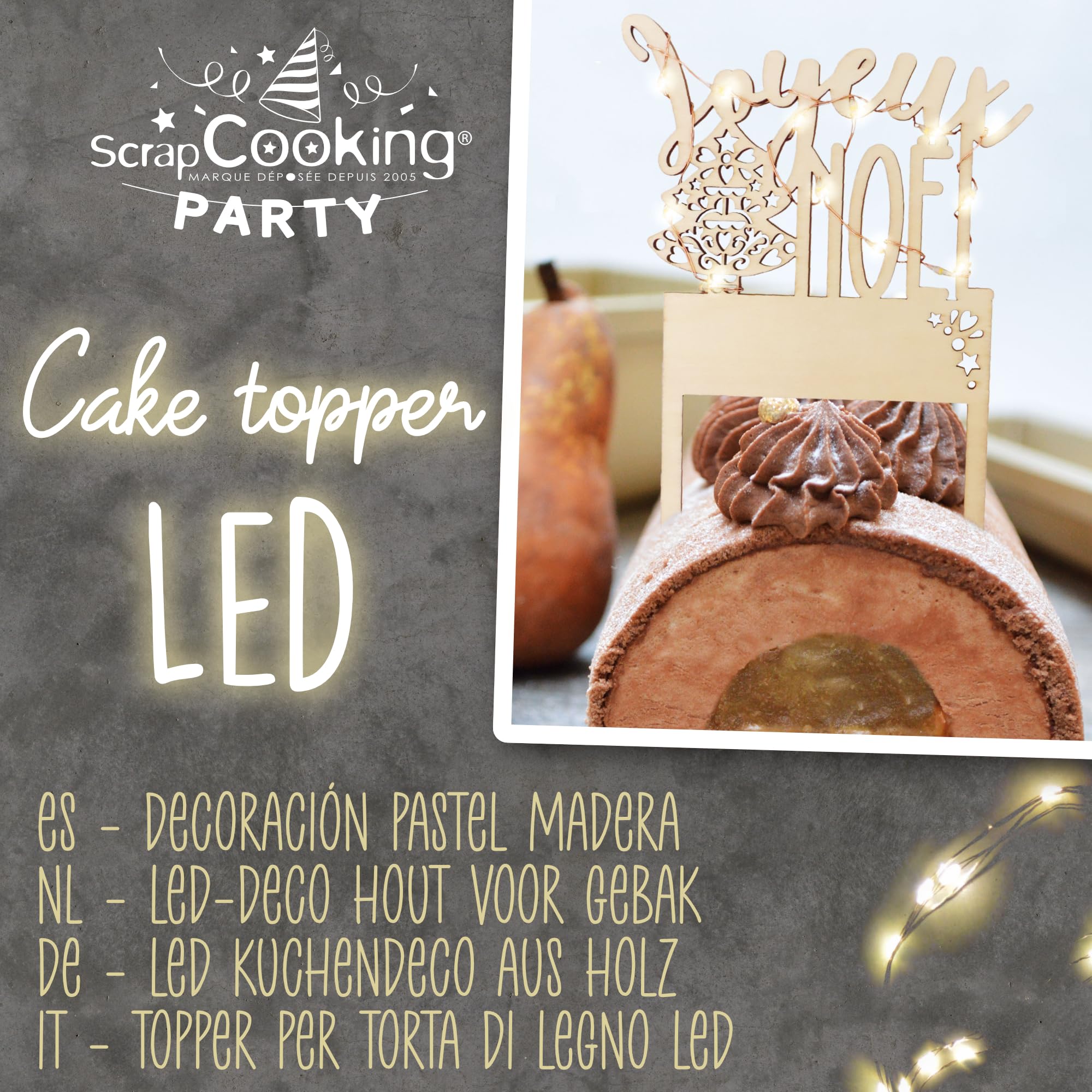 ✨ BELEUCHTEN SIE IHRE DESSERTS - Ein leuchtender Cake Topper für ein festliches und unvergessliches Erlebnis für das neue Jahr. Produktbeschreibung Nicht für die Spülmaschine oder den Ofen geeignet., Nicht verdrehen. LED-Topper Happy New Year - Kuchen Planet Alle unsere Produkte werden in Frankreich in unseren Werkstätten in Fondettes entworfen (37). 4962) und Merry Christmas (Ref., 4963) Scrapcooking - Cake Topper LED "Happy Birthday" - Les Secrets du Chef Nur solange der Vorrat reicht: Beleuchtete Dekoration aus Holz - ab 0.0 N/A | Günstig bestellen ✔ 30 Tage Rückgaberecht ✔ Dies ist kein Spielzeug, nicht in die Hände von Kindern gelangen. Silvester Deko 2025 Led ScrapCooking – Cake Topper LED "Happy New Year" – Beleuchtete Weihnachtsdeko Für Torten 🌲 Elegante Dekoration aus Holz – Dieser Cake Topper aus Holz verleiht Ihren Desserts am 31., Dezember oder 1., Januar einen natürlichen und authentischen Duft. Eine stilvolle Dekoration, um Ihren Gästen ein Happy New Year zu wünschen dank der angebrachten Buchstabenschrift. Nicht unter Wasser legen. Einfach zu bedienen, stecken Sie einfach den Tortenaufsatz auf die Oberseite Ihres Kuchens. 2 x CR2032-Batterien sind für den sofortigen Gebrauch enthalten. Vervollkommnen Sie die Präsentation Ihrer Kuchen, Scheite, Kuchen, Gebäcks und andere Leckereien mit einer spektakulären Dekoration, die die Wärme des Holzes mit der Zartheit der LEDs verbindet Eine stilvolle Dekoration, um Ihren Gästen ein Happy New Year zu wünschen dank der angebrachten Buchstabenschrift. Einfach zu bedienen, stecken Sie einfach den Tortenaufsatz auf die Oberseite Ihres Kuchens Wiederverwendbar, mit einem leicht feuchten Schwamm abwaschbar (nicht für Spülmaschine oder Backofen geeignet). Nicht in direkten Kontakt mit Flamme oder auf einem elektrischen Kochfeld bringen. Warnhinweise Nicht für die Spülmaschine oder den Ofen geeignet., Nicht verdrehen.