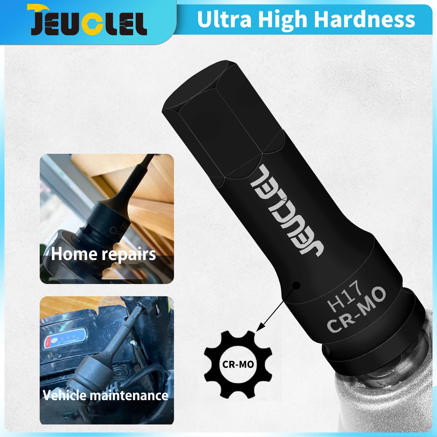 JEUCLEL 17 Mm Sechskant Schlag Bit Stecknuss, H17 1/2 Zoll Schlagantrieb, Cr Mo Stahl, Verlängerter Sechskant Schraubendreher Adapter Für Elektrische Ratschenschlüssel, Befestigungsschrauben