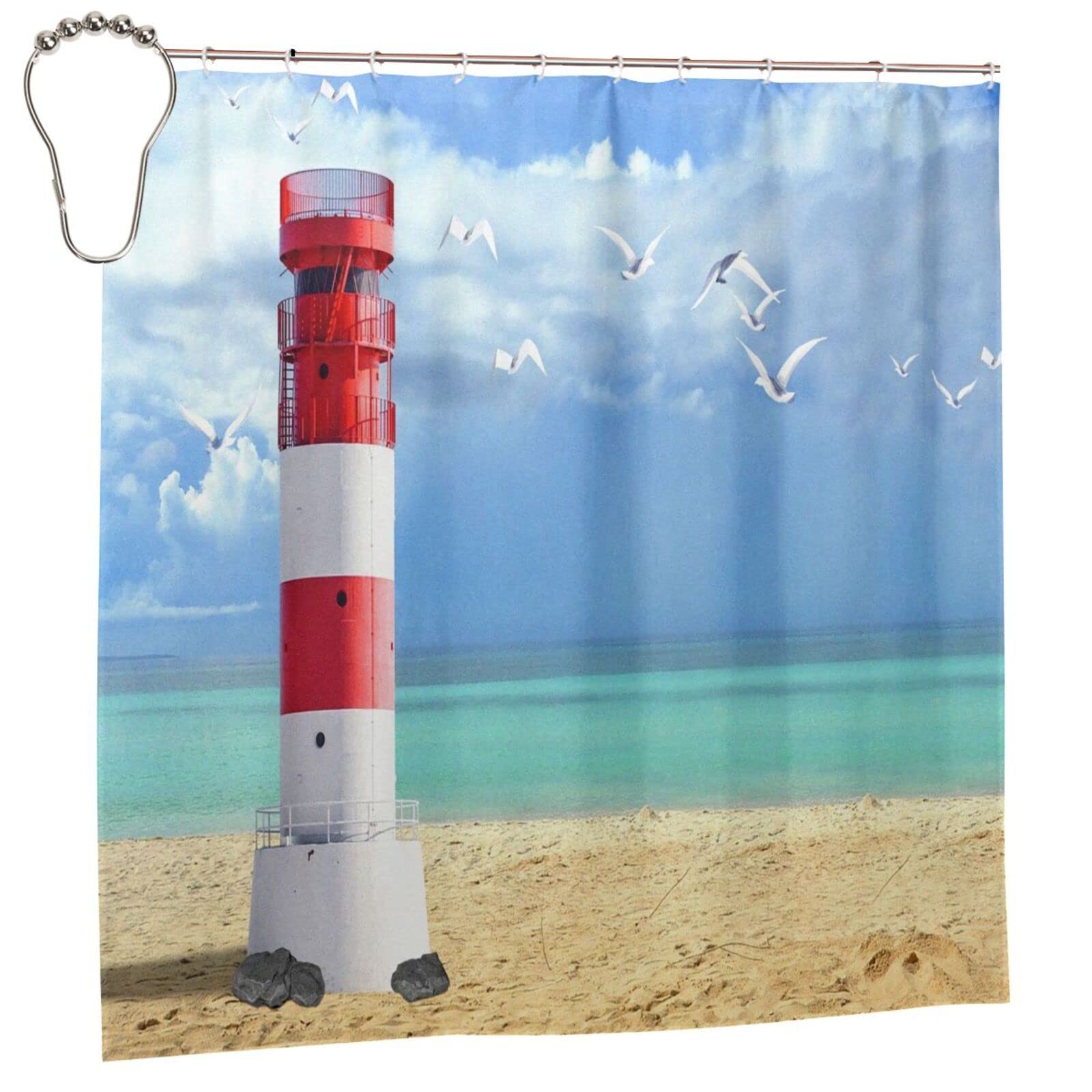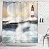 Bonhause Duschvorhang Maritim Nautische Anker Leuchtturm Segelboot Duschvorhänge 180 X 180 Cm Anti-Schimmel Wasserdicht Polyester Stoff Waschbar Bad Vorhäng Für Badzimmer Mit 12 Haken