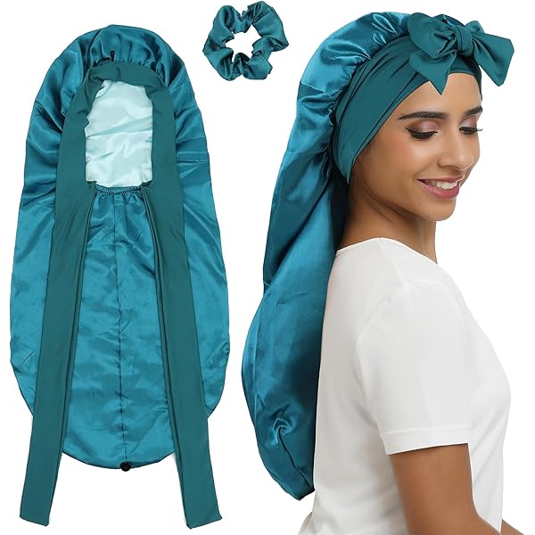 Seidenhaube, Extra Lange Satinhaube Für Damen, Verstellbare Zöpfe