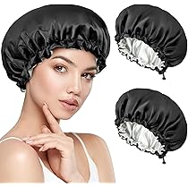 3 Stück Seidenhaube Zum Schlafen, Schlafhaube Seide Verstellbare Satin Haarhaube Atmungsaktive Haarhaube Für Die Nacht Weiche Silk Bonnet Schlafmütze Für Damen Und Mädchen (Schwarz