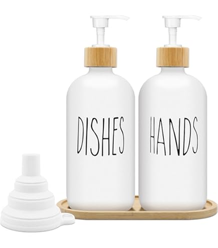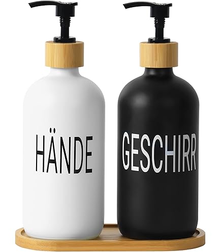 Stilvolles Seifenspender-Set: Verschönern Sie Ihre Badezimmerdekoration mit unserem eleganten 2-teiligen schwarzen Seifenspender-Set mit eleganten silbernen Pumpen. Durchdachte Geschenkidee: Dieses ästhetisch ansprechende und praktische Seifenspender-Set ergänzt jeden Einrichtungsstil und verleiht Badezimmern und Küchen einen Hauch von Eleganz. Im Gegensatz zu Glasspendern sind sie langlebig und bruchfest, was eine dauerhafte Nutzung auf Ihrer Arbeitsplatte gewährleistet. Dieses Vintage-inspirierte Set verfügt über zwei exquisite schwarze Flaschen, die jeweils mit einer stilvollen silbernen Pumpe ausgestattet sind, die anmutig von einem eleganten Tablett für mühelose Organisation begleitet wird. Dieses moderne Design wertet nicht nur Ihren Raum auf, sondern ist auch eine funktionale Notwendigkeit für jeden Haushalt. Verwandeln Sie Ihren Waschraum oder Ihre Küchenarbeitsplatte mit diesem schönen **schwarzen Seifenspender-Set**. Es ist ein wunderbares Geschenk für Freunde und Familie, die sowohl Form als auch Funktion schätzen. Seifenspender aus Glas mit Edelstahlpumpe, 10 wasserfesten Etiketten und Rutschfester Silikon-Schutzunterlage, 2er-Set für Badezimmer und Küche (Goldene Pumpe+Schwarze Flasche+Pad Glas Seifenspender GMISUN Seifenspender Schwarz Matt,Seifenspender Kunststoff Für Küchen Seifenspender Spülmittel Hergestellt aus hochwertigem Harz, bieten unsere Seifenspender nicht nur Haltbarkeit, sondern verleihen jedem Raum auch einen Hauch von Raffinesse. Hochwertige Konstruktion: Hergestellt aus hochwertigem Harz, das das Aussehen von Stein imitiert, bieten unsere Seifenspender ein stabiles und stabiles Design. DKD Home Decor Sefenspender Badezmmer Set DKD Home Decor natürlch Egal, ob Sie Ihre Seifenaufbewahrung neu dekorieren oder einfach nur Ihre Seifenaufbewahrung aufwerten möchten, unser Paar **Badezimmer-Seifenspender** und **Spülseifenspender** werden Ihre Bedürfnisse mit Eleganz und Leichtigkeit erfüllen. Vielseitiges Seifenspender Set Einzigartiges Set-Design, bestehend aus 2 Glasspendern und 1 Metallhalter. In den Spendern können Händedesinfektionsmittel, Reinigungsmittel, Shampoo, Lotion, ätherische Öle usw. aufbewahrt werden